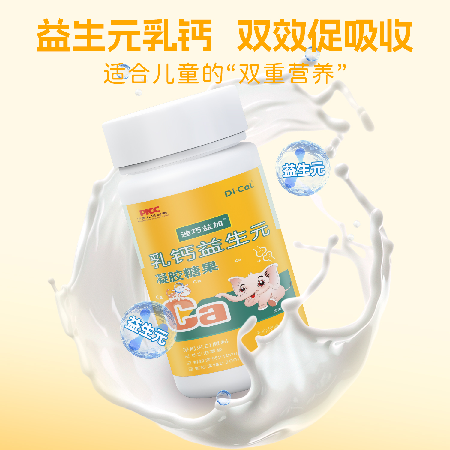 迪巧益加液体乳钙海藻钙婴幼儿宝宝儿童益生元补乳钙辅食缺钙
