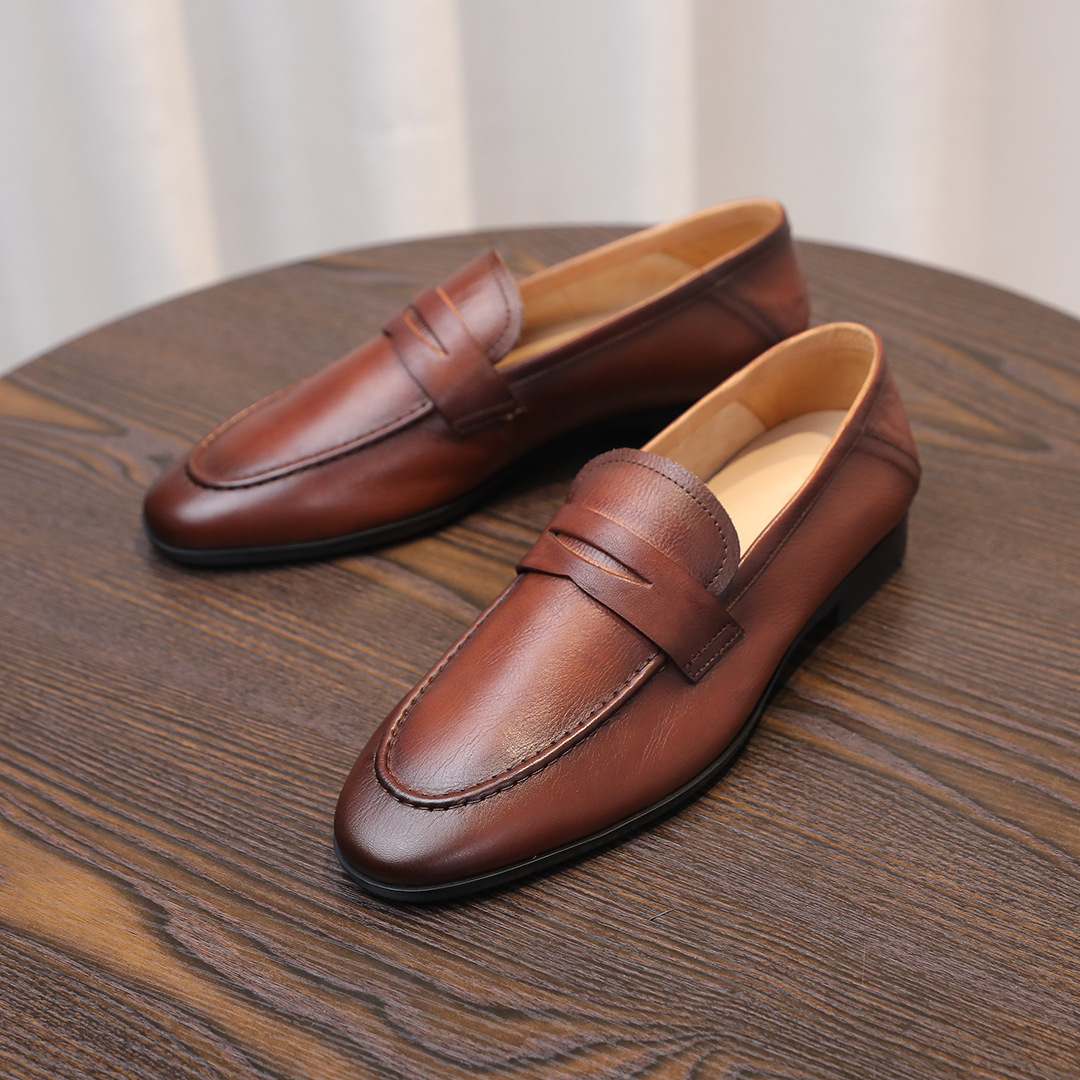 2025秋季男士乐福鞋设计感头层牛皮擦色经典款低跟英伦风休闲皮鞋