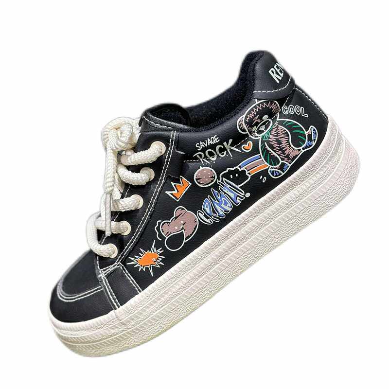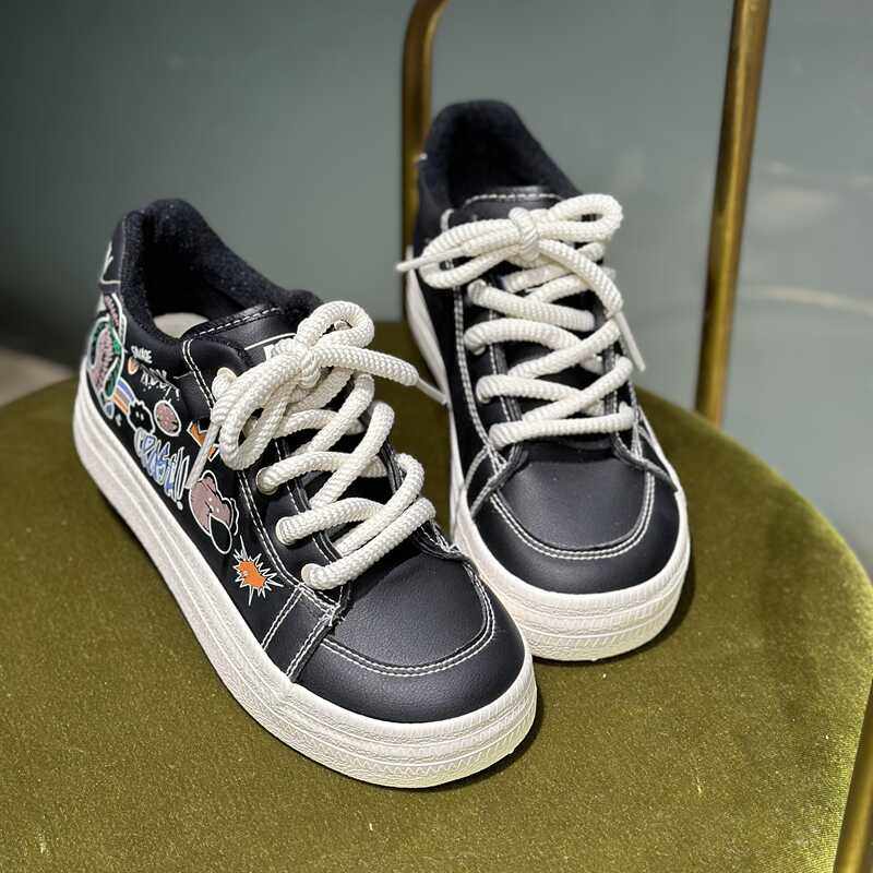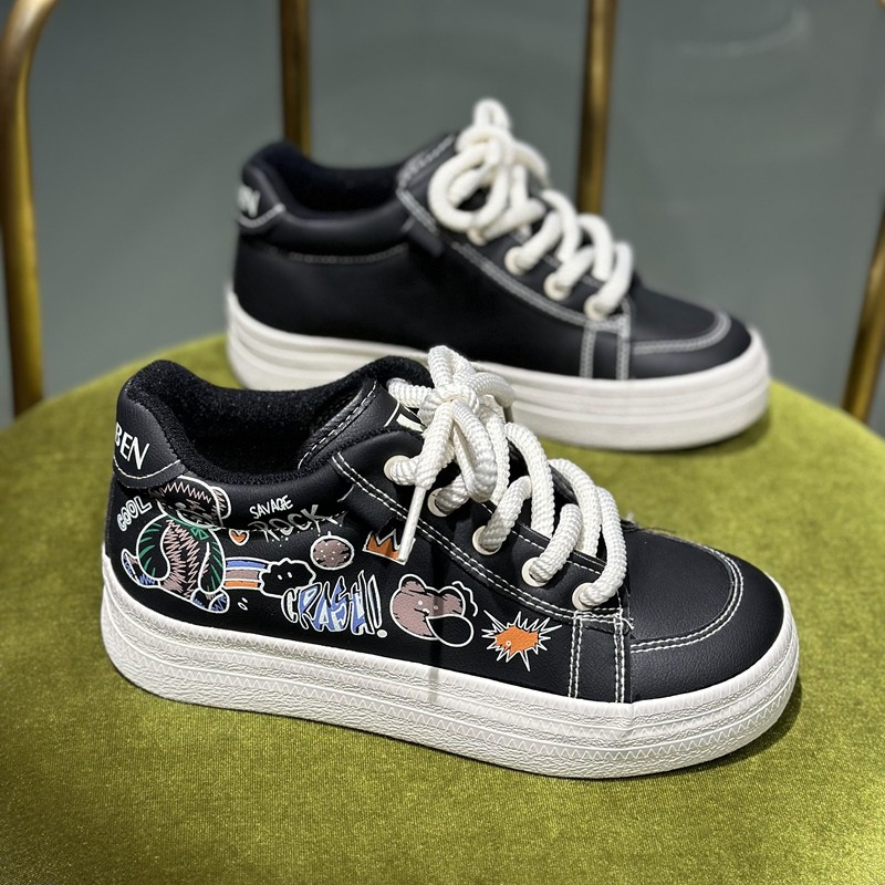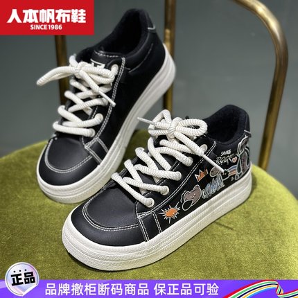 人本皮面秋冬款加绒韩版时尚潮流平底学生休闲板鞋舒适ins女鞋子