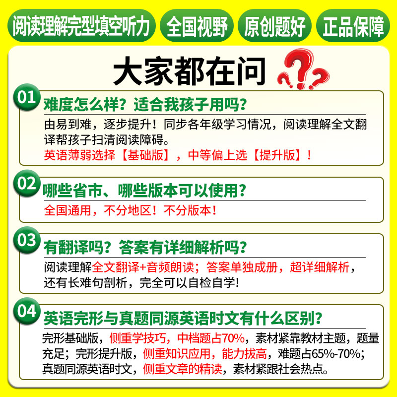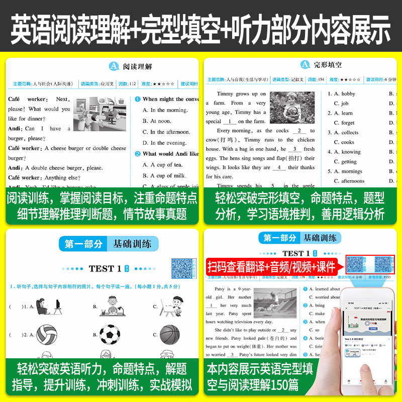2026新版一本英语阅读理解英语完形填空英语听力七八九年级小学升初中英语阅读理解与完形填空中考英语专项训练辅导必刷题中学教辅