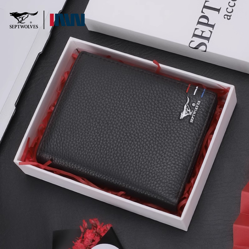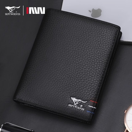 七匹狼钱包男士短款真皮皮夹子竖款2022新款潮拉链牛皮超薄钱夹