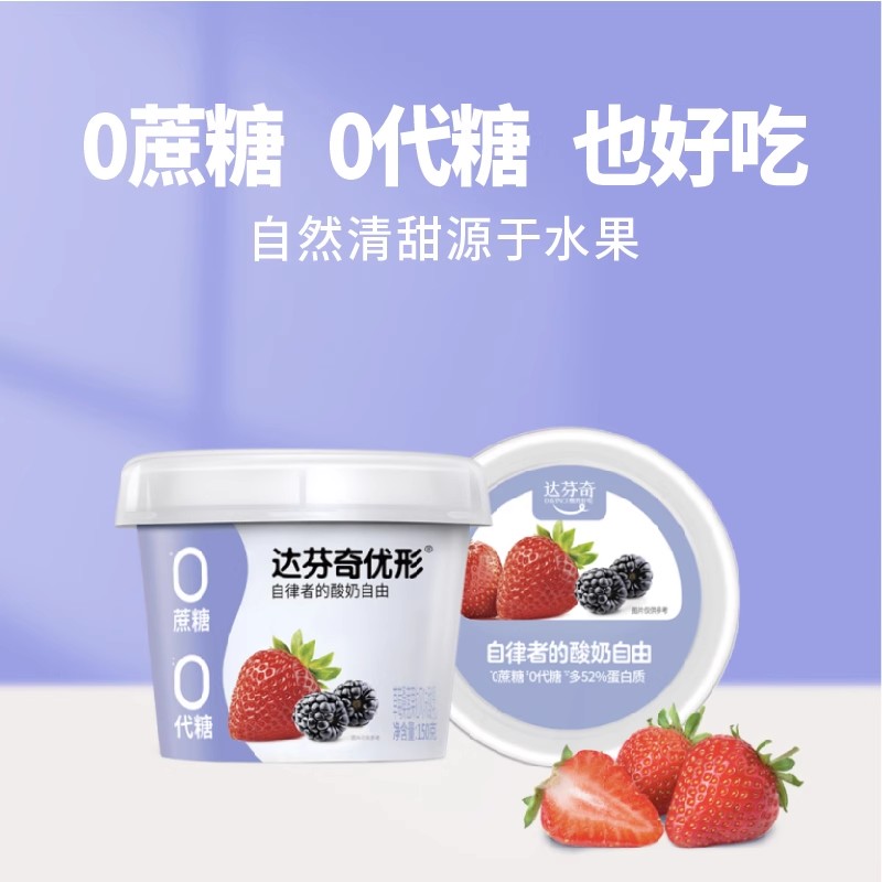 达芬奇酸奶0蔗糖0代糖优形草莓蓝莓大果粒低温早餐酸奶