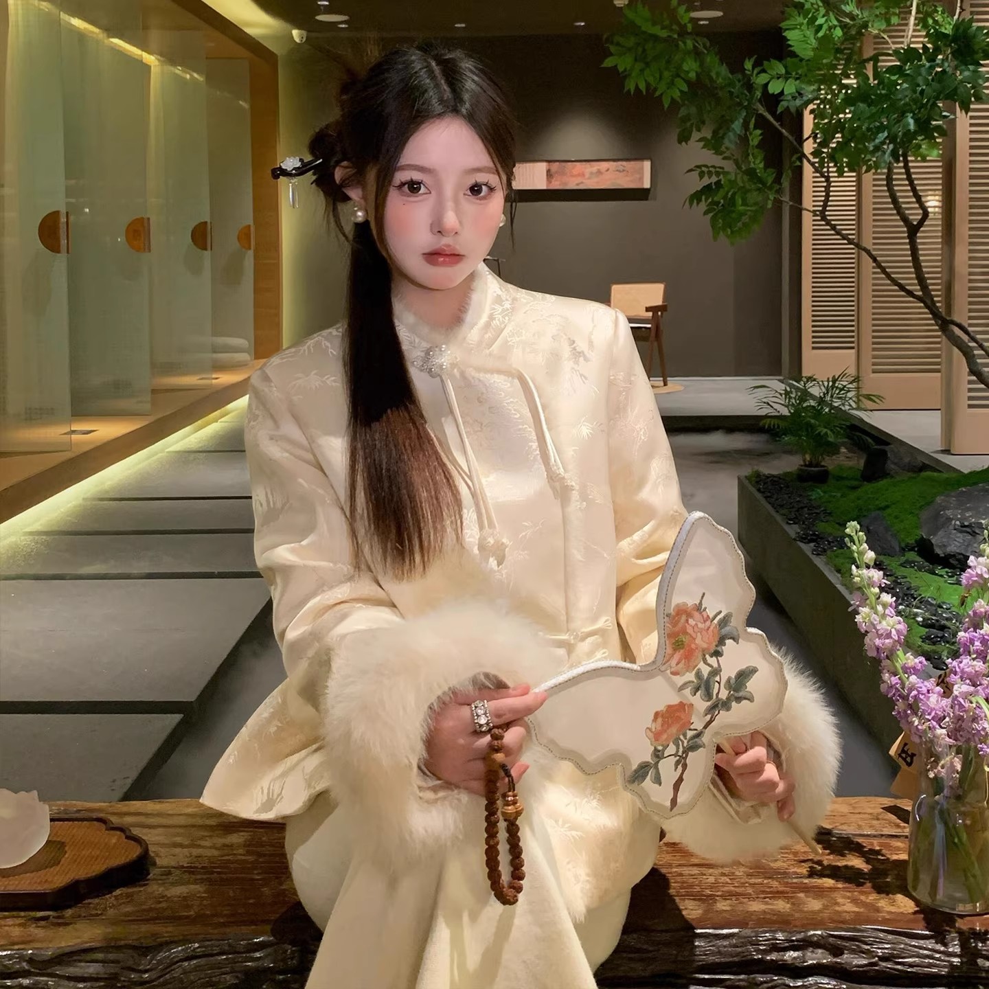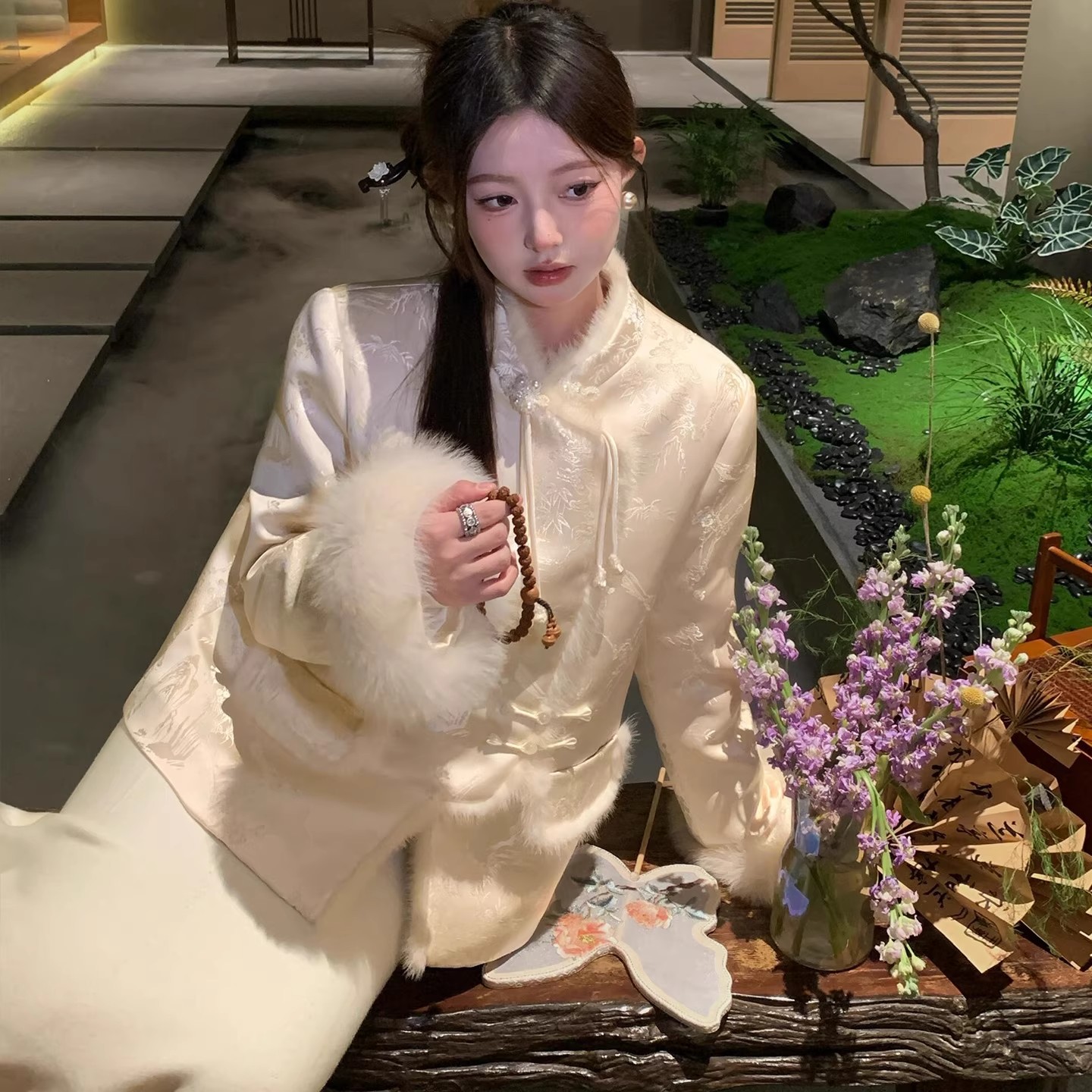 2025秋冬新款新中式国风皮草缎面刺绣棉袄外套女加厚上衣唐装棉服