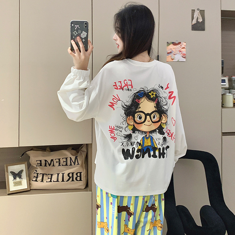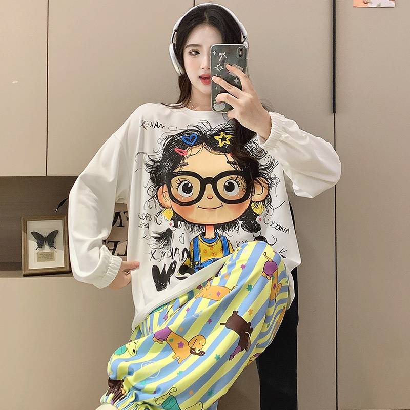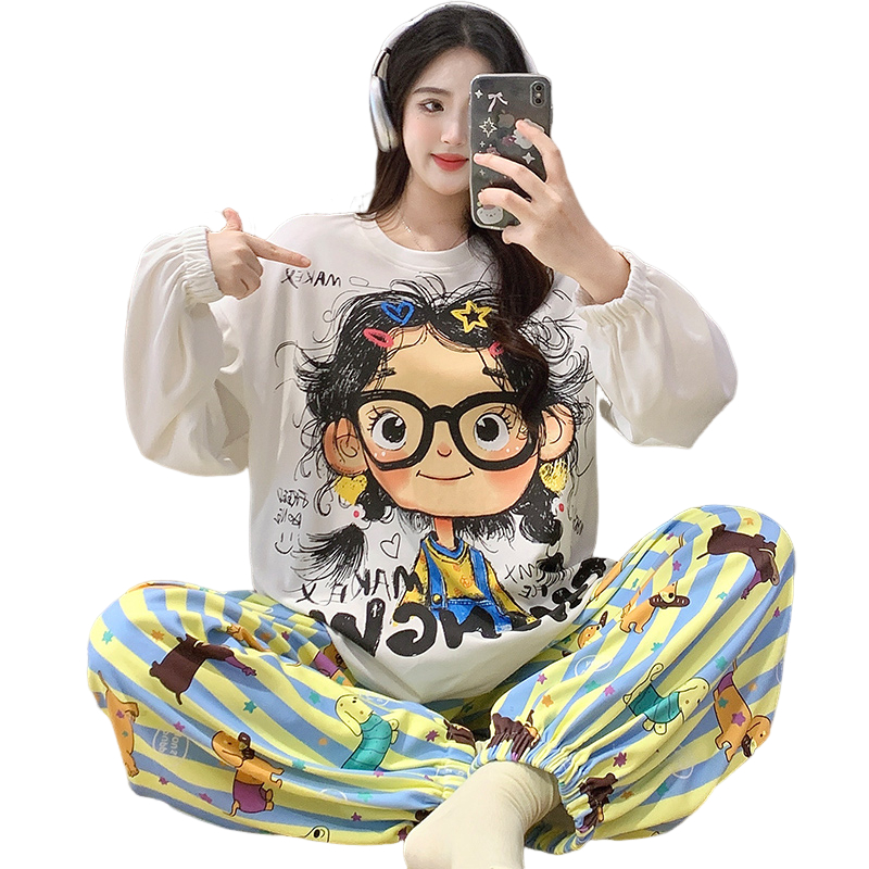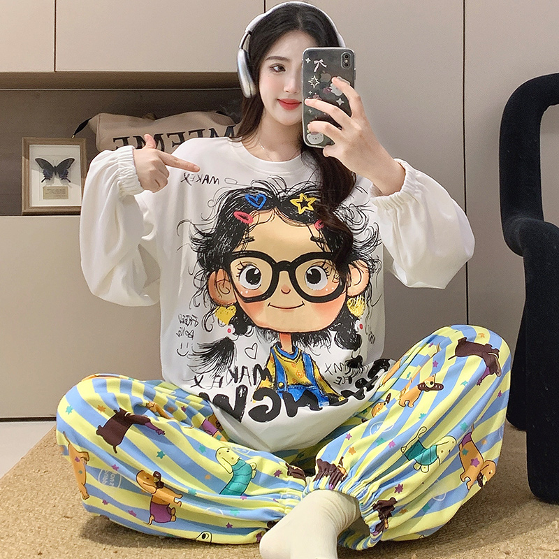 德绒睡衣女秋冬季保暖长袖可外穿女士大码套装卡通少女甜美家居服