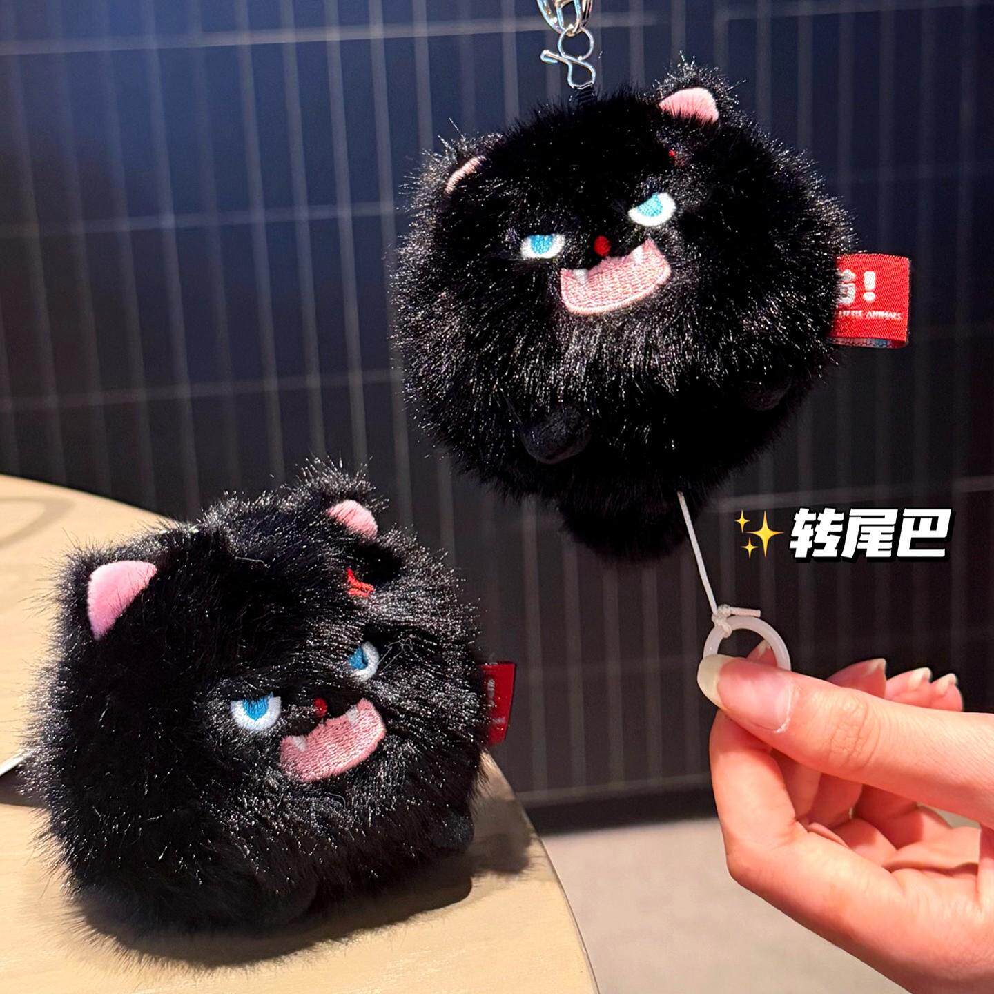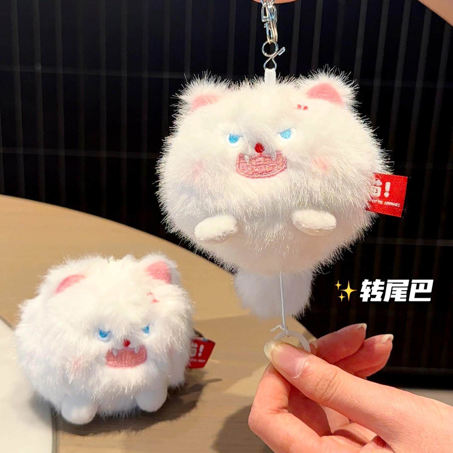卡通炸毛小宠摇尾巴圆球公仔钥匙扣可爱毛绒玩偶儿童学生背包挂件