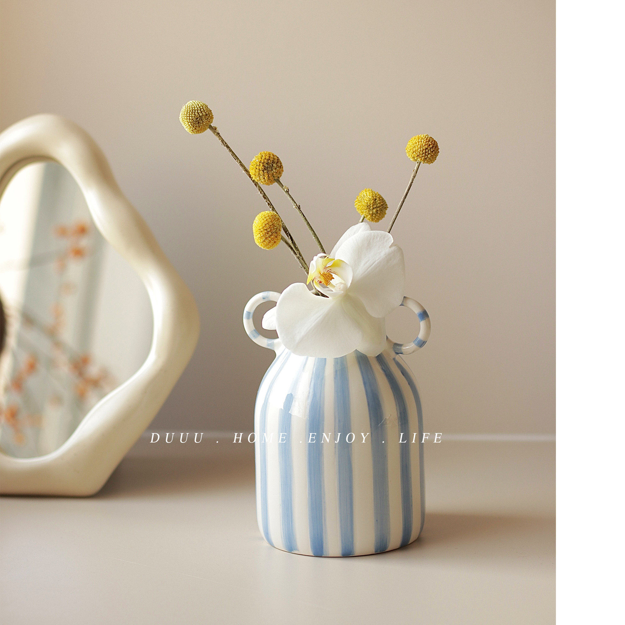 北欧小众创意彩色手绘双耳陶瓷小花瓶可爱装饰家民宿桌面摆件花器