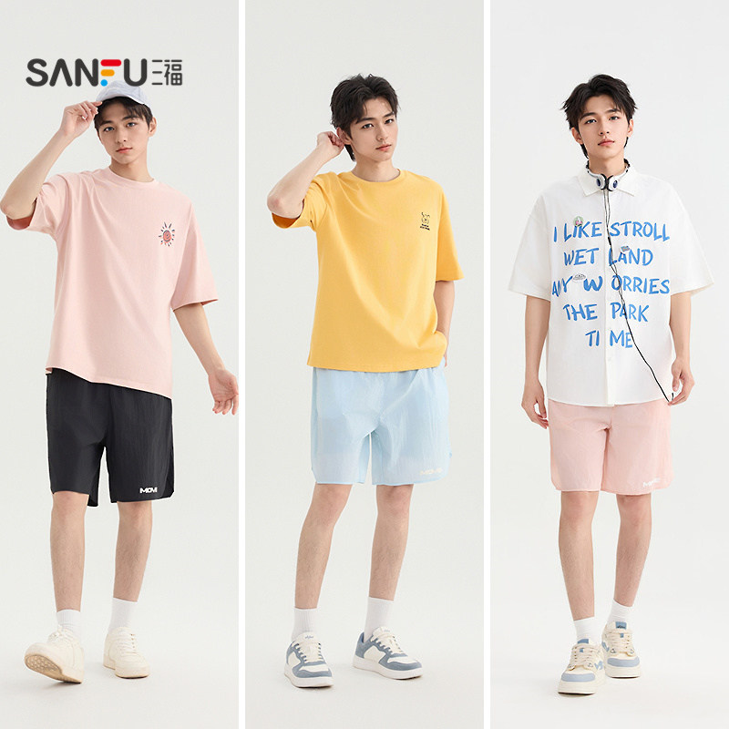 三福2026夏季男士休闲简约宽松短裤 时尚橡筋腰头裤子男500950