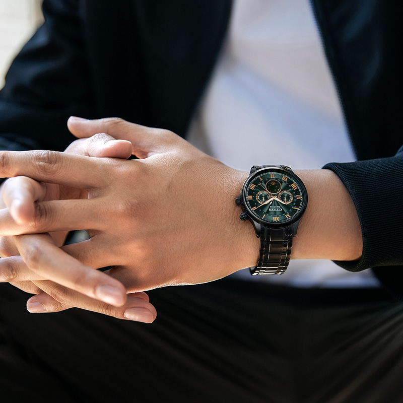 西铁城官方旗舰店光动能商务休闲石英月相夜光显示男士手表AP1055