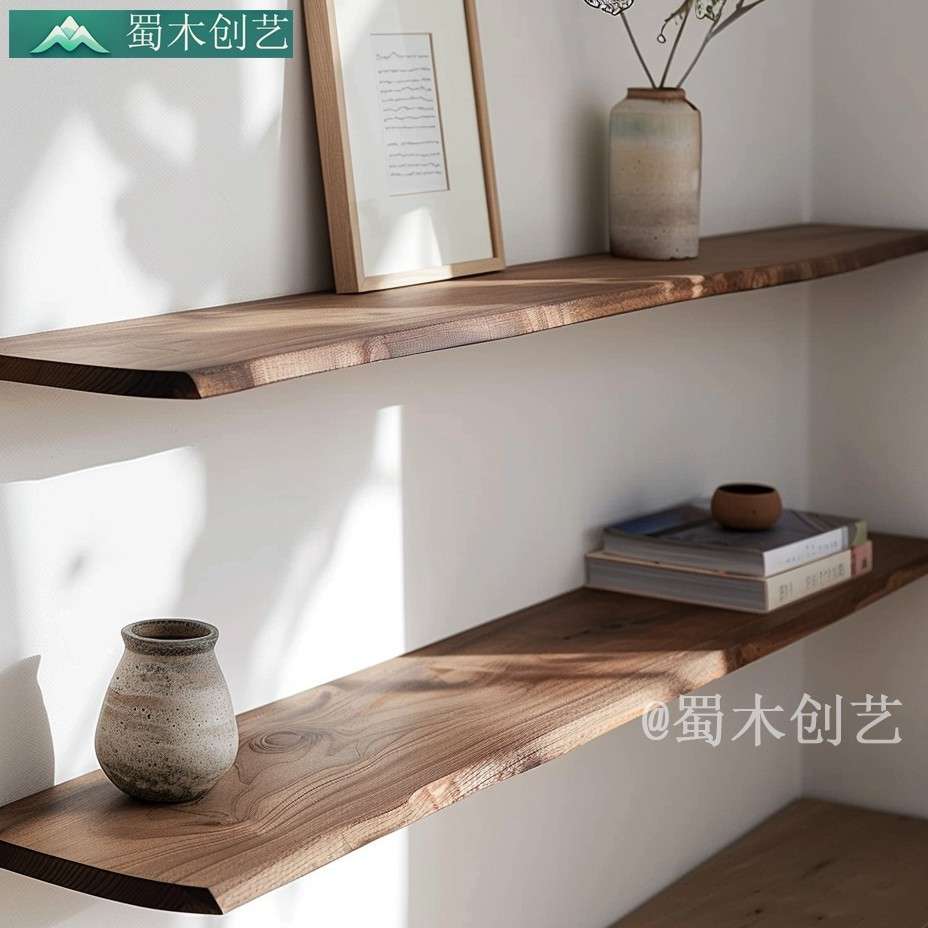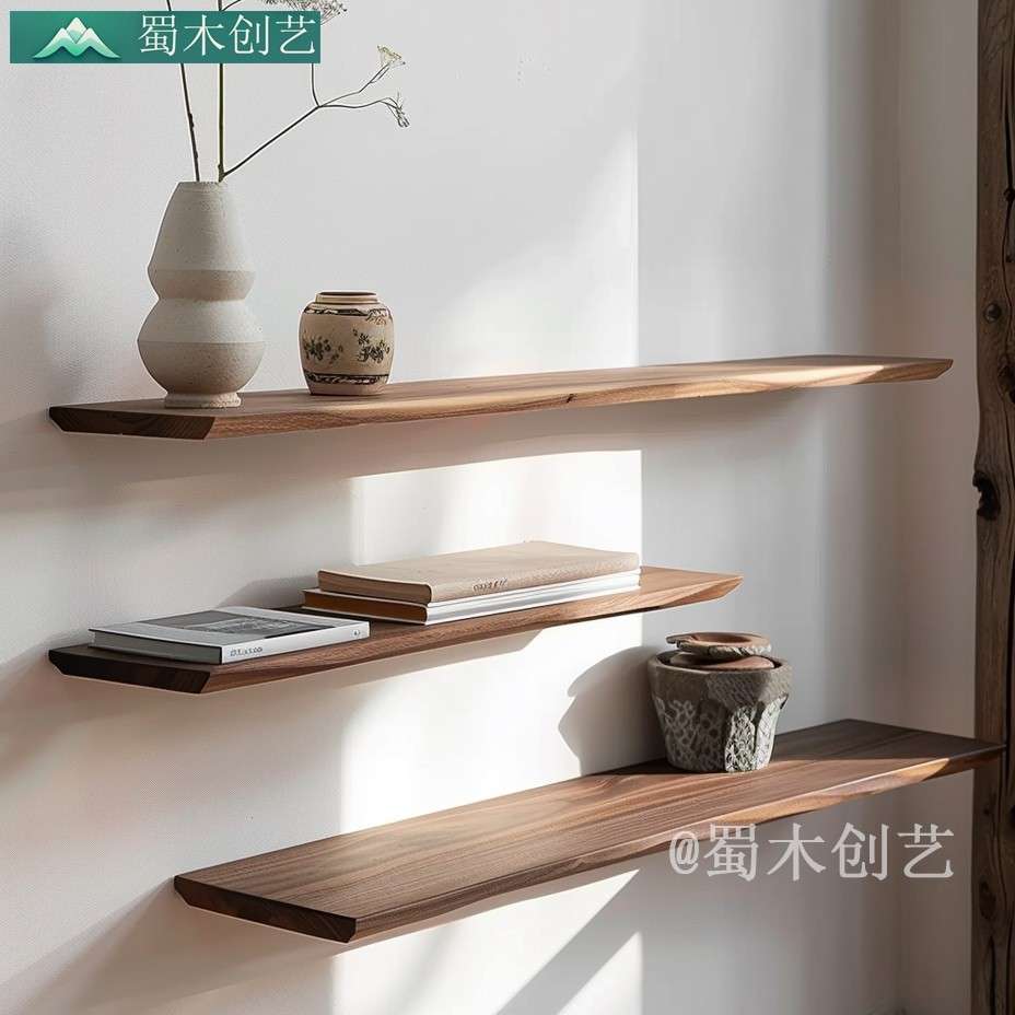 黑胡桃木色实木层板一字隔板置物搁架展示墙面摆收纳壁挂式墙书&Z
