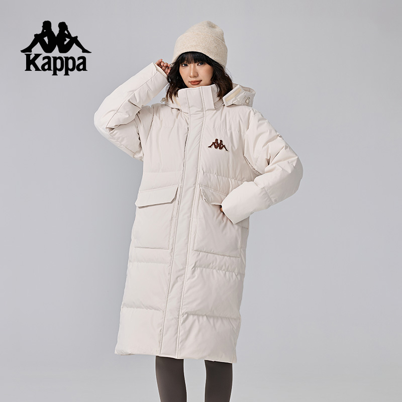 Kappa卡帕背靠背保暖羽绒服女款2025新款冬连帽长款防寒服外套男