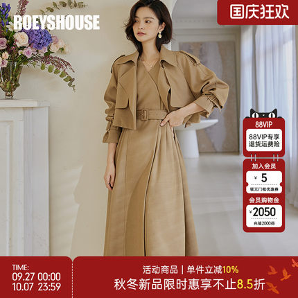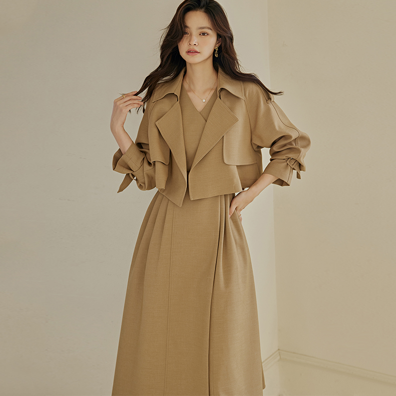 罗衣知性卡其色套装女2025冬季新款气质短外套连衣裙两件套07551