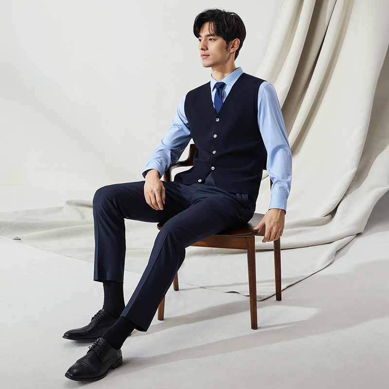【高端系列】柒牌开衫羊毛衫男士2025春季新款无袖V领保暖针织衫