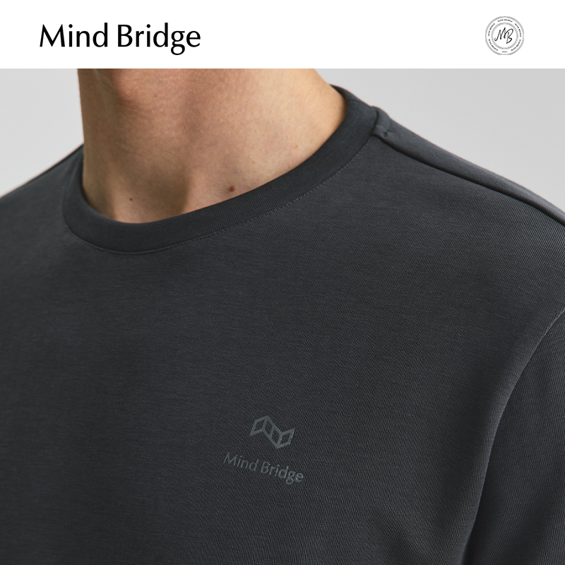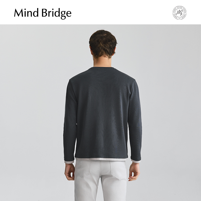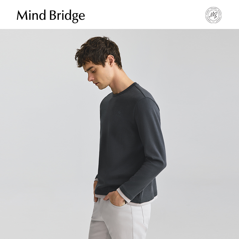 MindBridge男士假两件长袖T恤2025年秋新款圆领打底简约休闲上衣