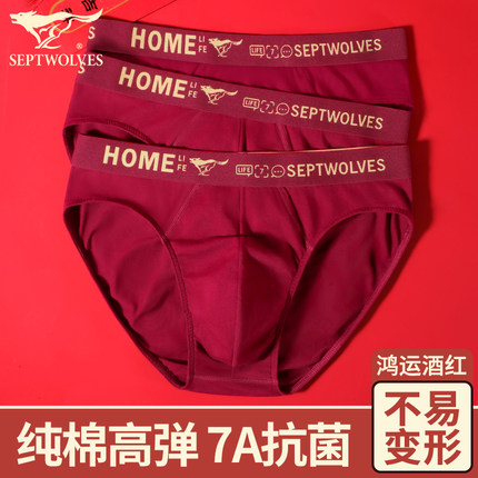 七匹狼本命年酒红内裤男结婚三角