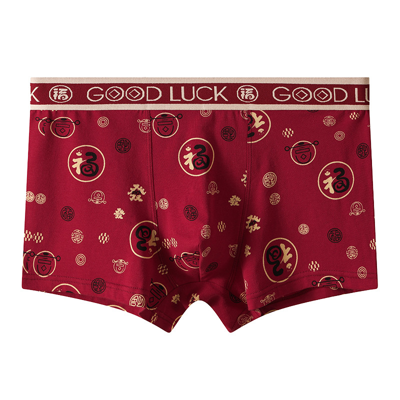 纯棉男士内裤男平角裤本命年鸿运男士四角裤结婚喜庆男款裤头2025
