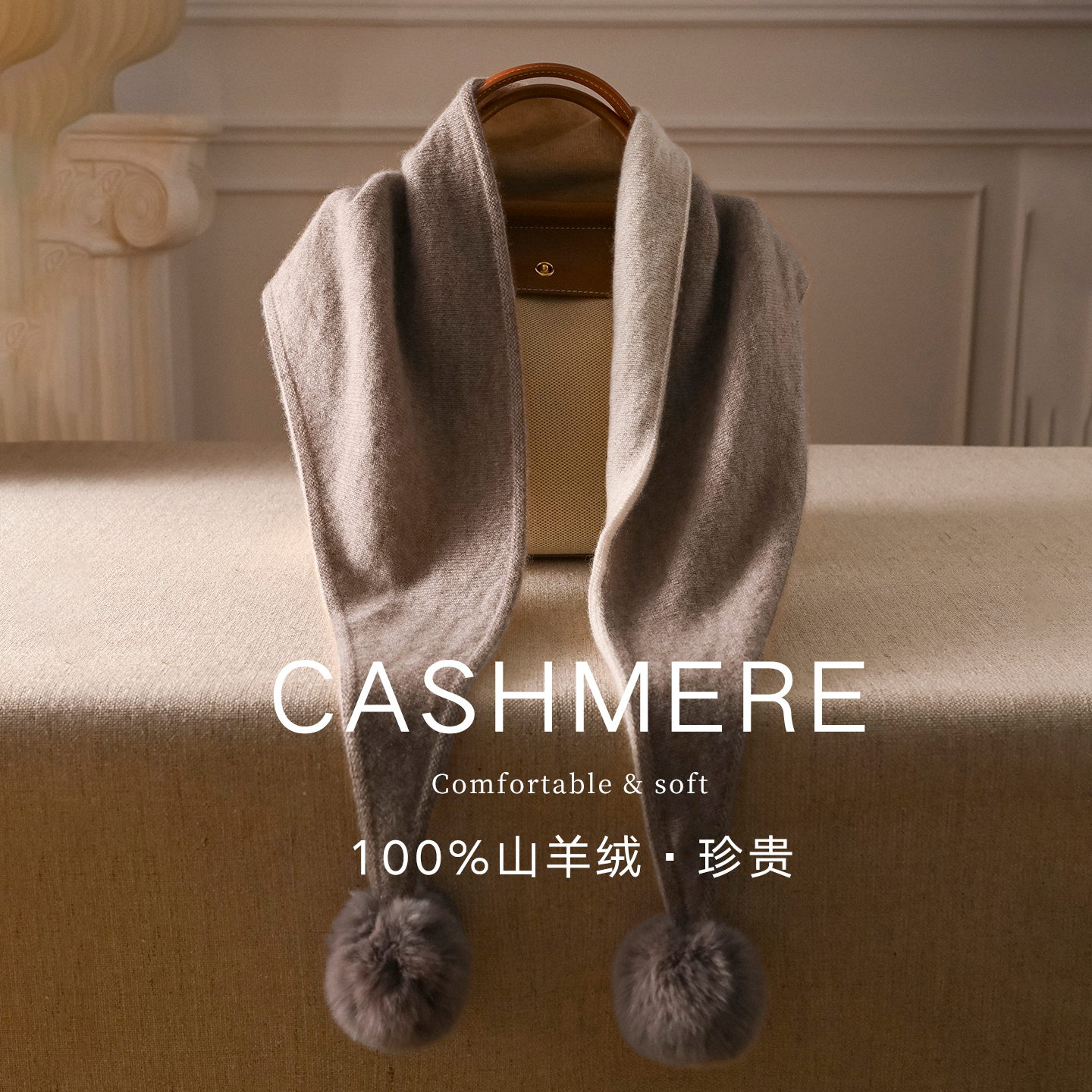 可爱獭兔毛球羊绒围巾三角巾披肩外搭冬季高级感日系简约保暖围脖