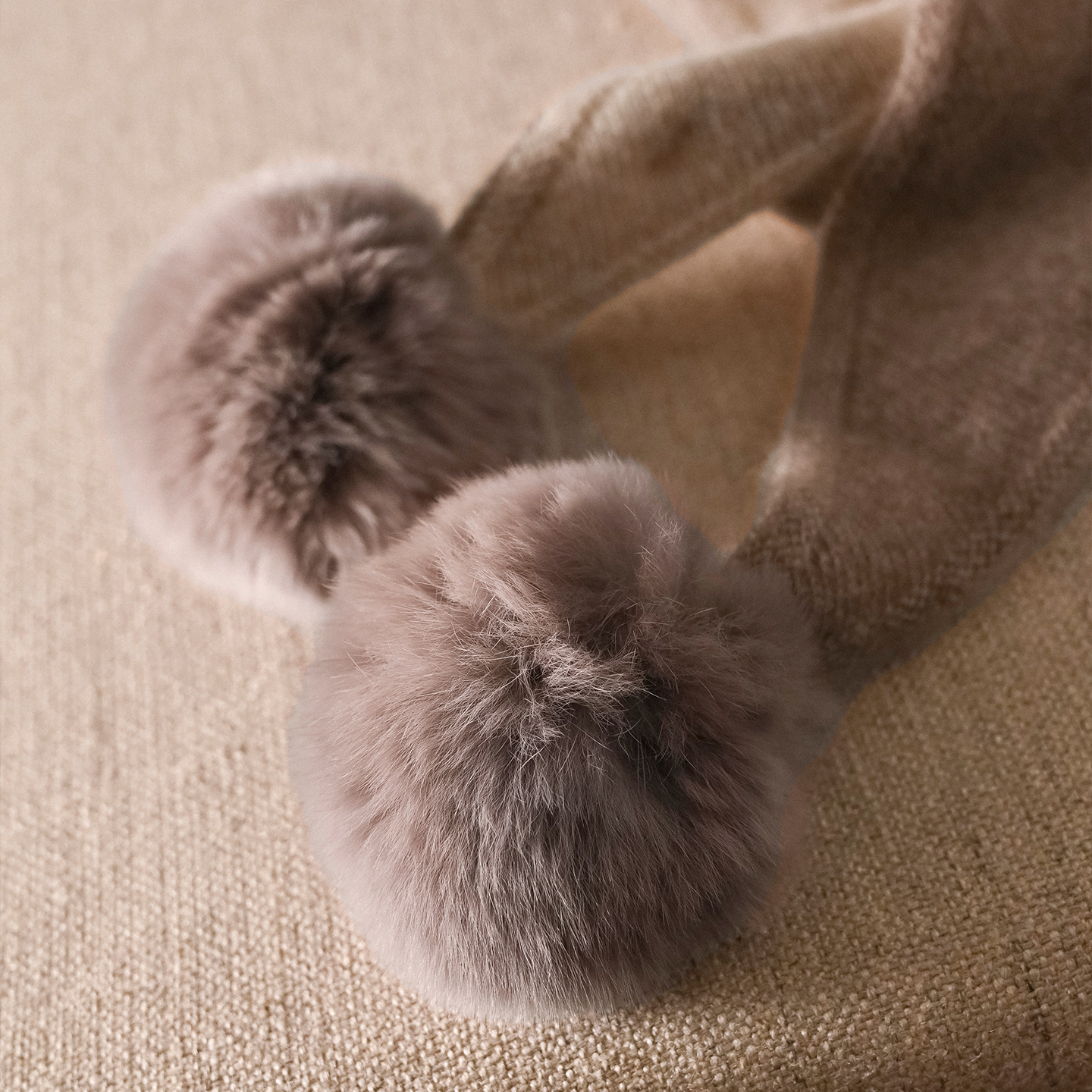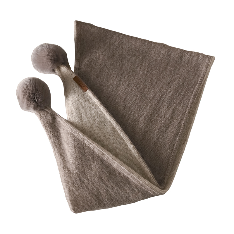 可爱獭兔毛球羊绒围巾三角巾披肩