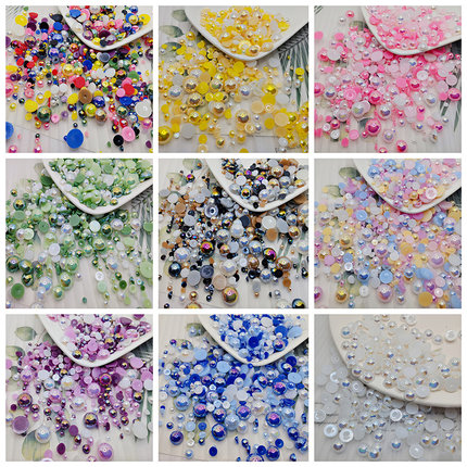 半面仿珍珠半圆平底圆形珠子AB幻彩贴片 diy手工发饰美甲饰品配件
