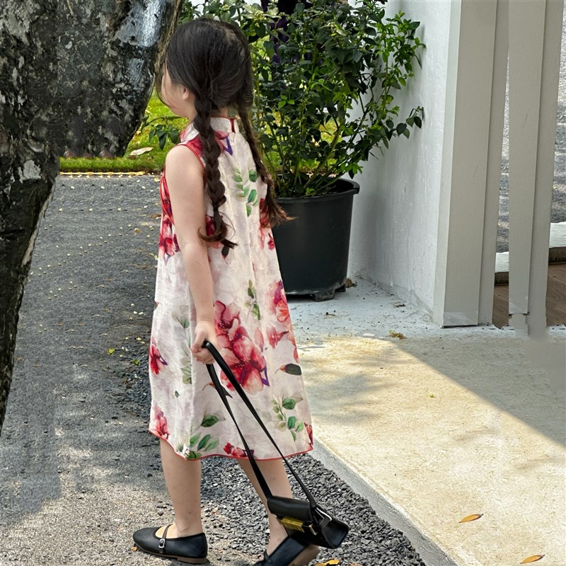 女童新中式改良旗袍2024夏季国风儿童复古无袖连衣裙夏季汉服裙子