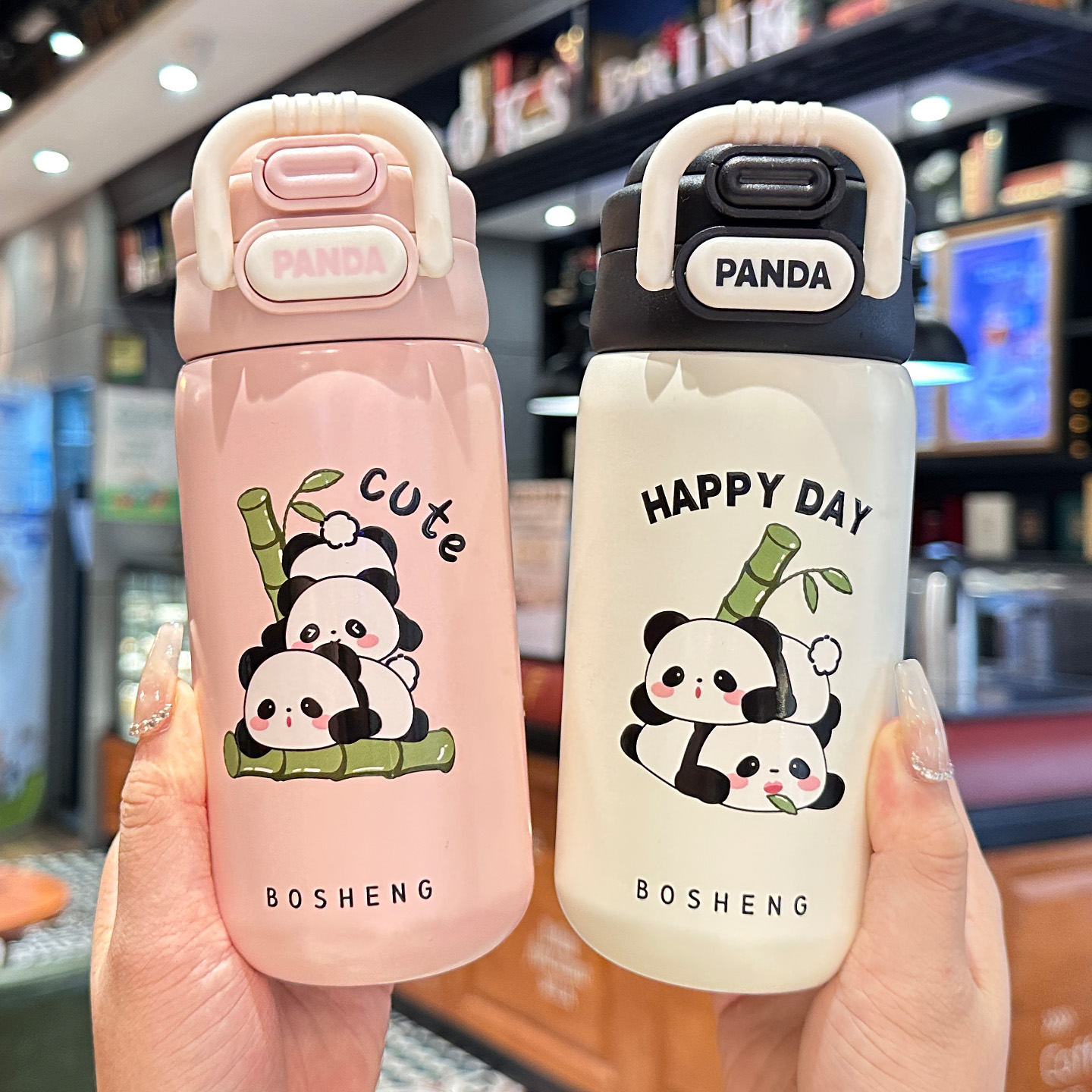 儿童保温杯男女孩便携可爱熊猫吸管水杯学生专用防摔316双饮杯子