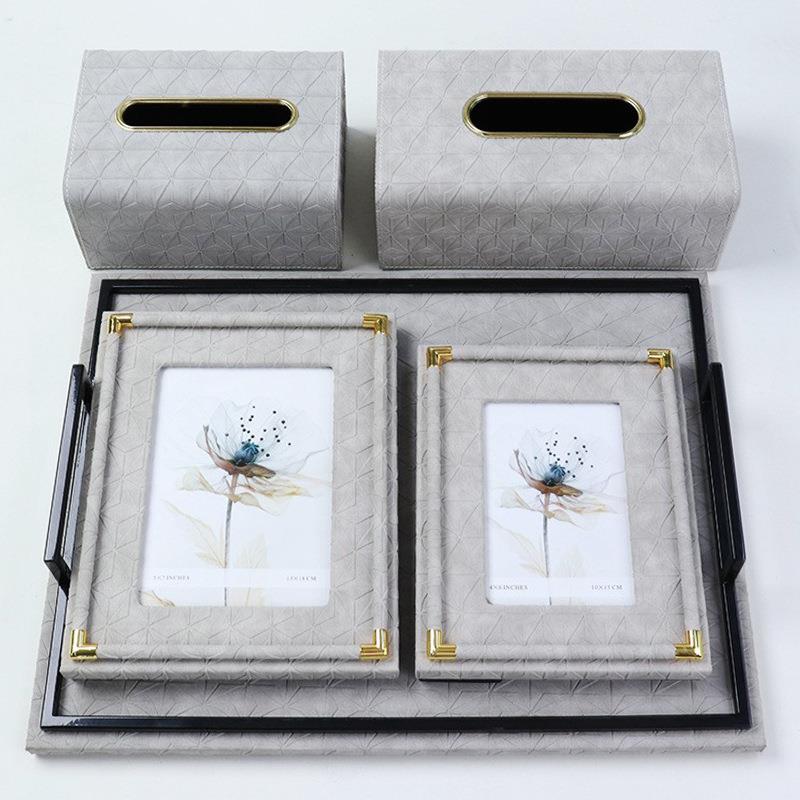 新款创意皮革相框首饰托盘组合搭配家居纸巾盒样板房卧室饰品摆件