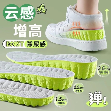 4D云感鞋垫内增高隐形全垫男女踩屎感与运动减震不累脚增高垫支撑