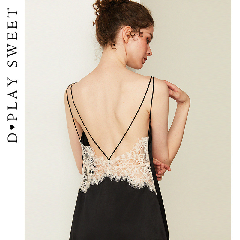 DPLAYSWEET性感美背黑色吊带裙睡衣睡裙女蕾丝纯欲风睡衣2025夏