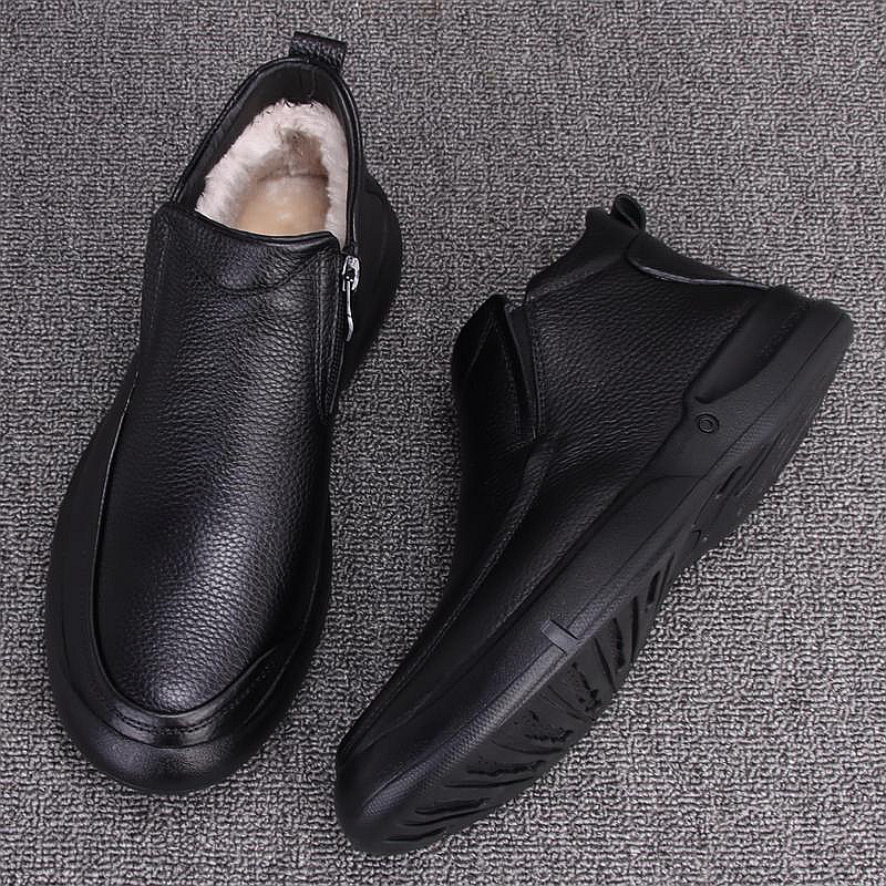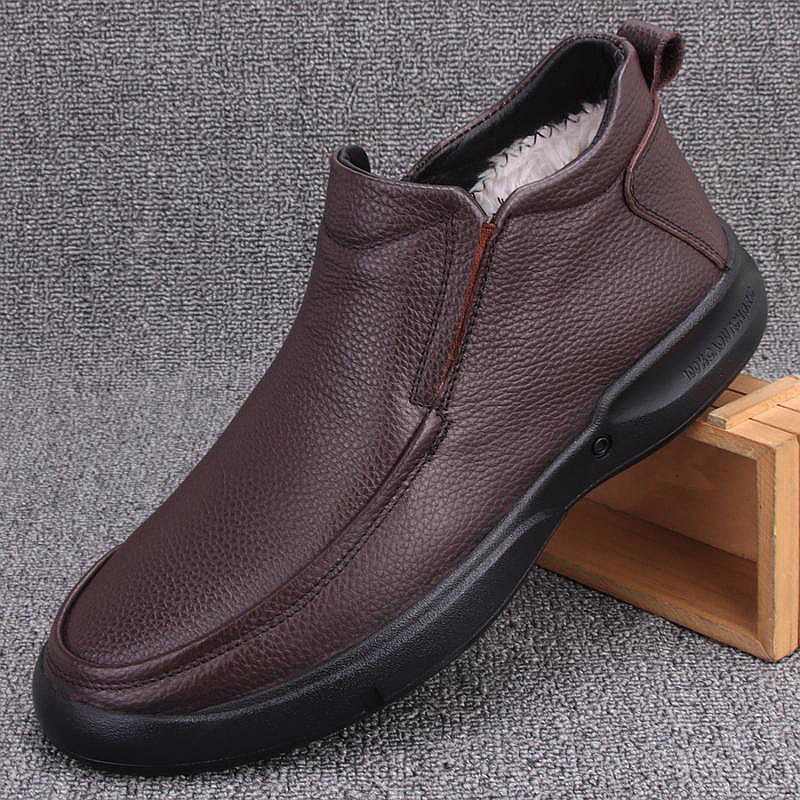外贸皮鞋男冬季新款加绒保暖高帮棉鞋真皮头层牛厚底中老年爸爸鞋