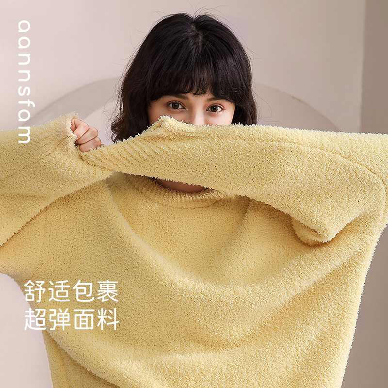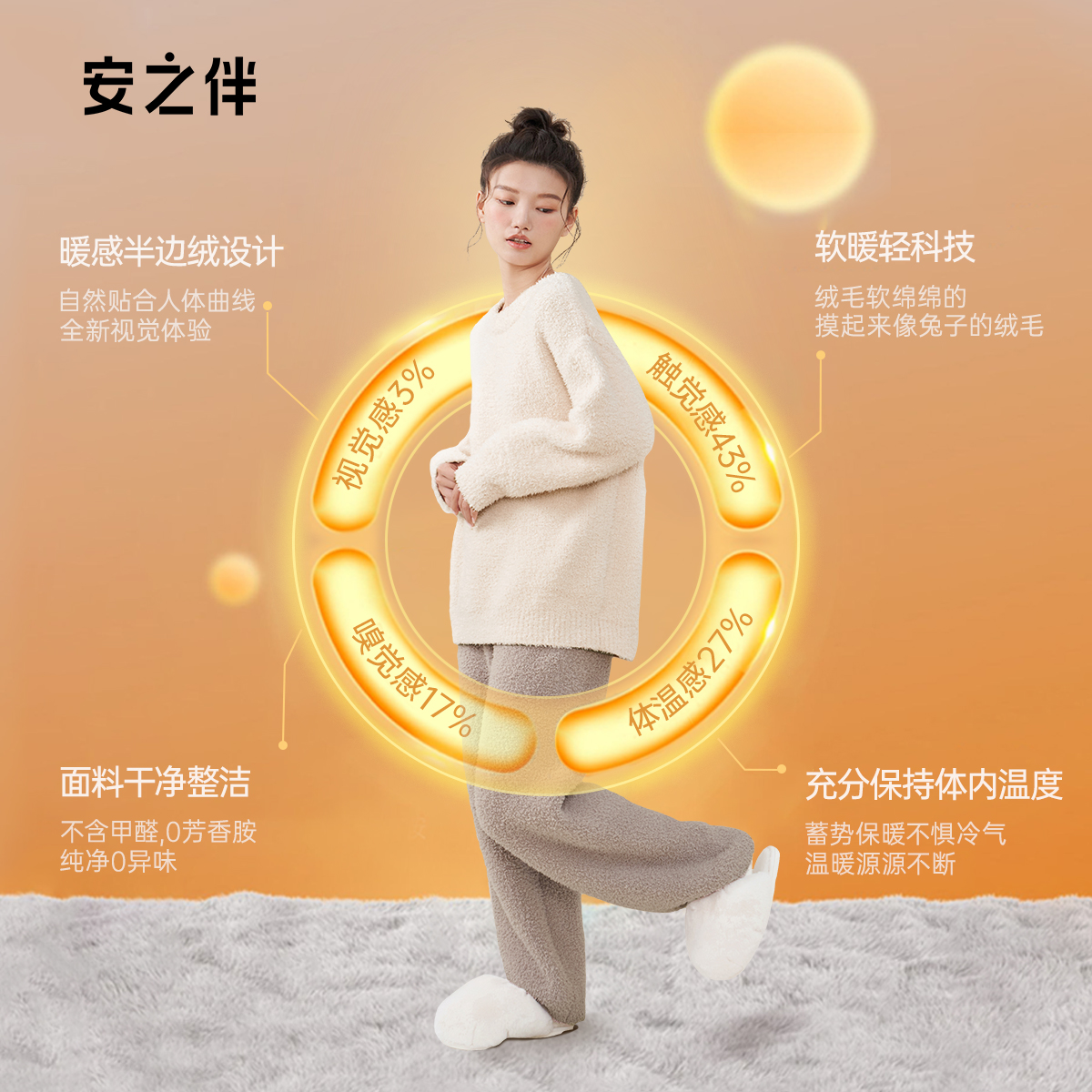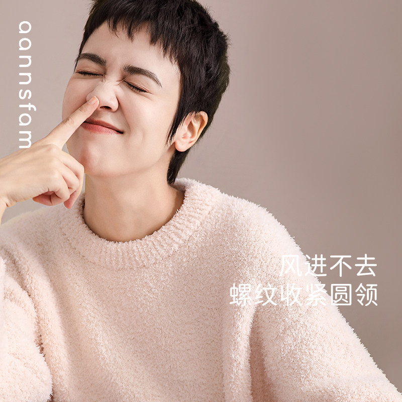 安之伴珊瑚绒睡衣女秋冬季半边绒圆领长袖家居服套装大码加厚保暖