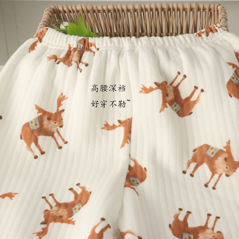 女纯棉空气层夹棉三保暖开身款长袖长裤睡衣家居服套装秋冬保暖