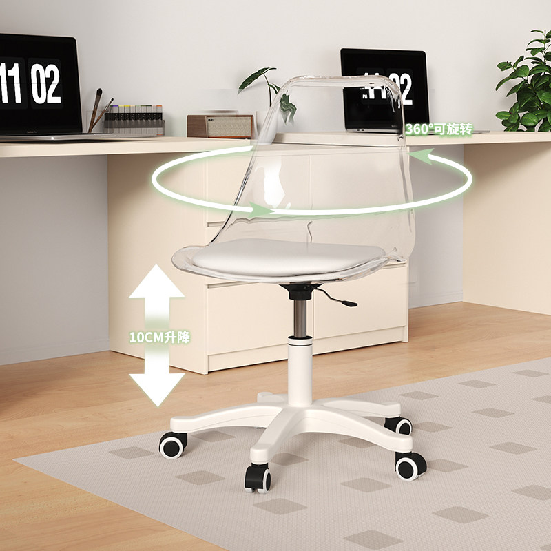 电脑椅子舒服久坐女生卧室化妆椅前台升降转椅宿舍透明靠背学习椅
