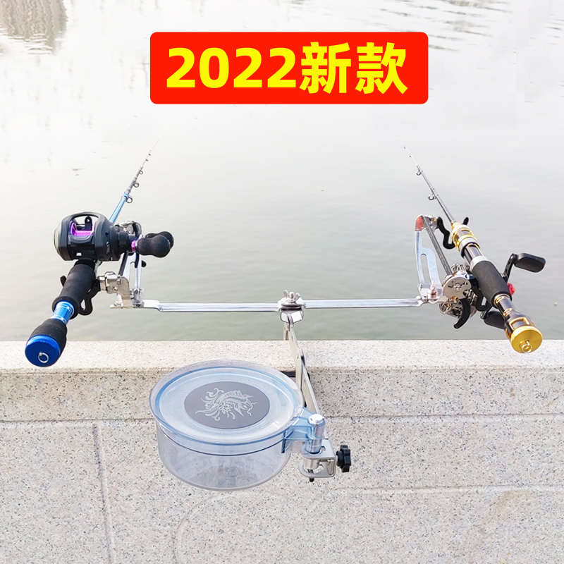 水滴轮双头支架桥钓筏钓纺车轮钓鱼架竿多功能架杆炮台竿架不锈钢