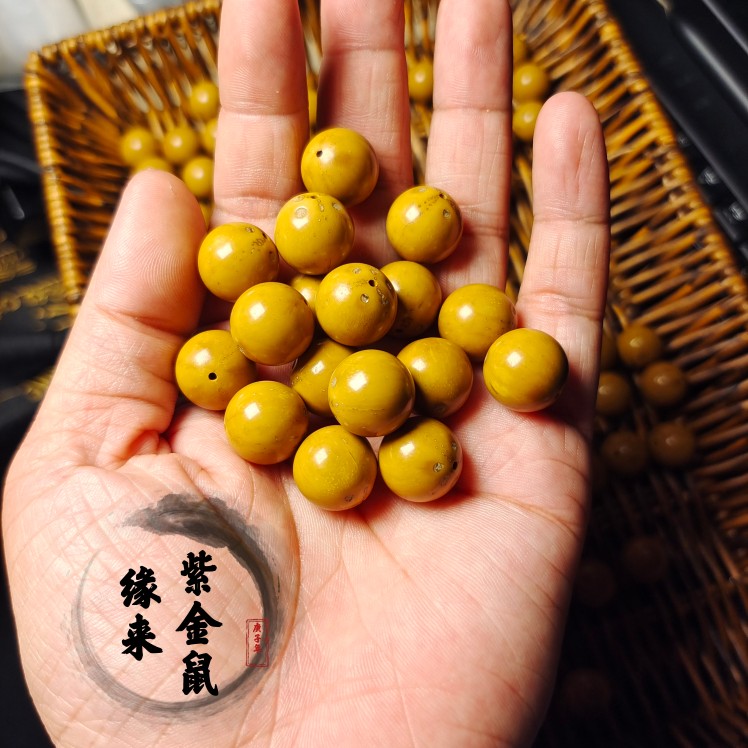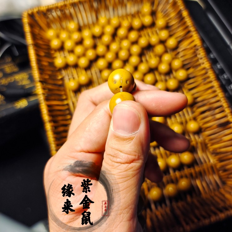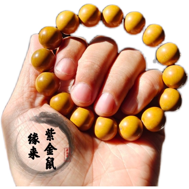 缘来招财紫金鼠正圆光珠绕指柔三眼菩提子手串佛珠念珠文玩