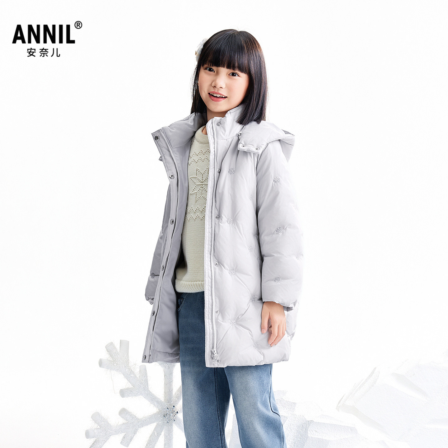 【商场同款】安奈儿童装女童中长款羽绒服冬新款保暖AG545389