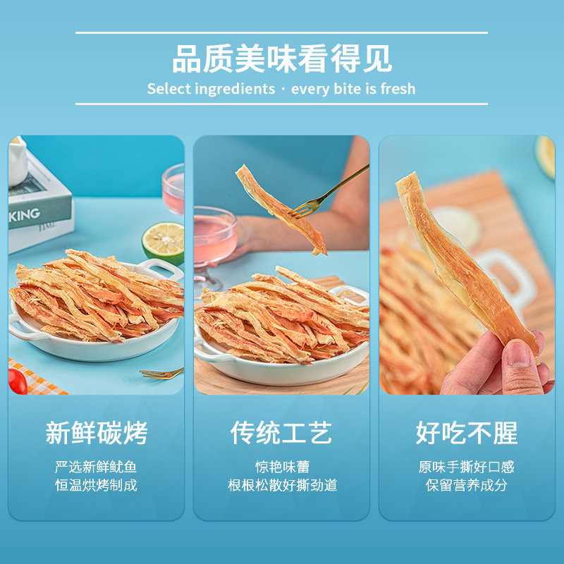 北海印象碳烤鱿鱼条原味手撕即食鱿鱼丝海鲜干货零食休闲追剧解馋
