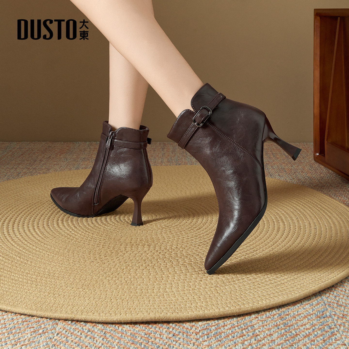 大东官方正品尖头高跟短靴英伦风