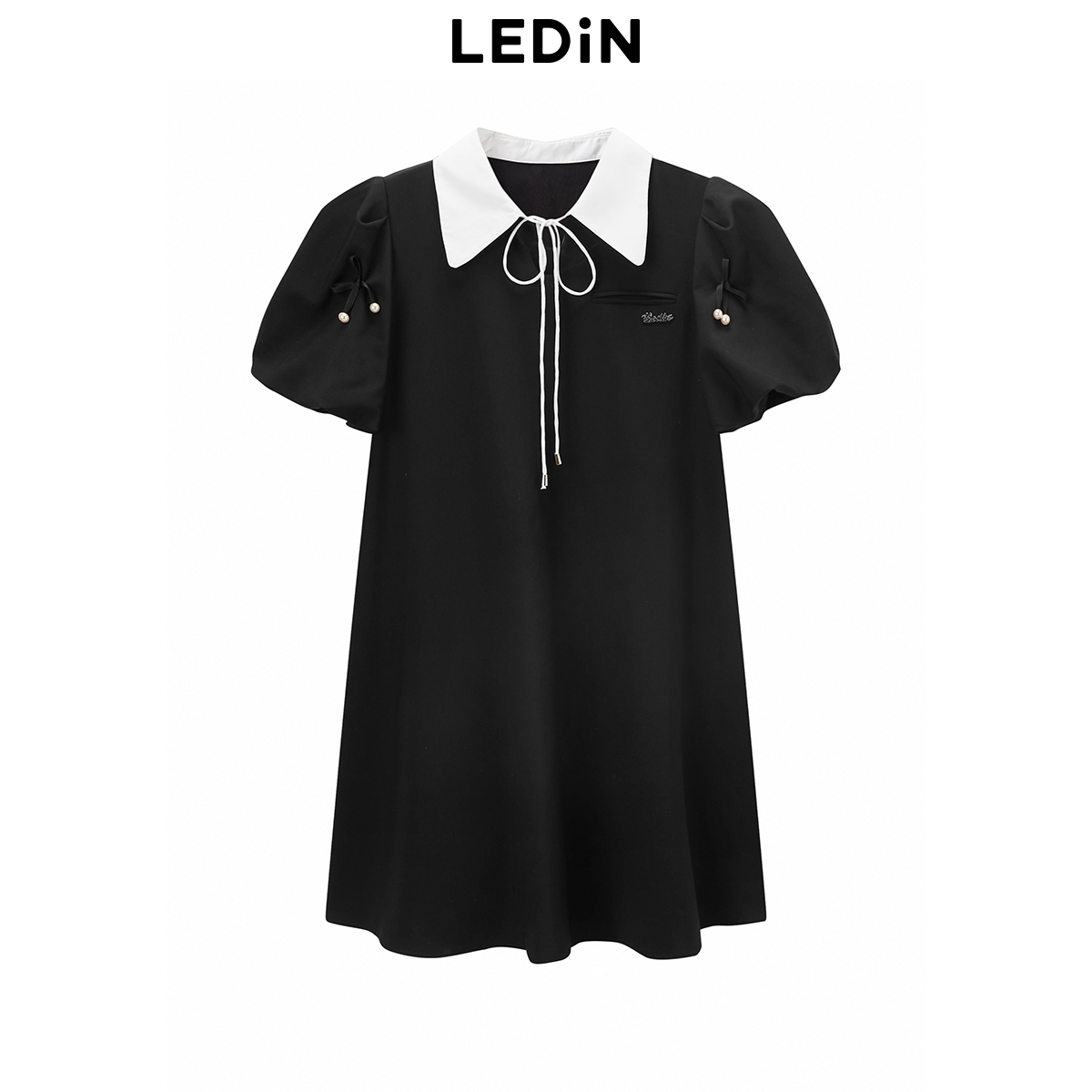乐町气质娃娃领连衣裙夏季小黑裙C2FAD2207