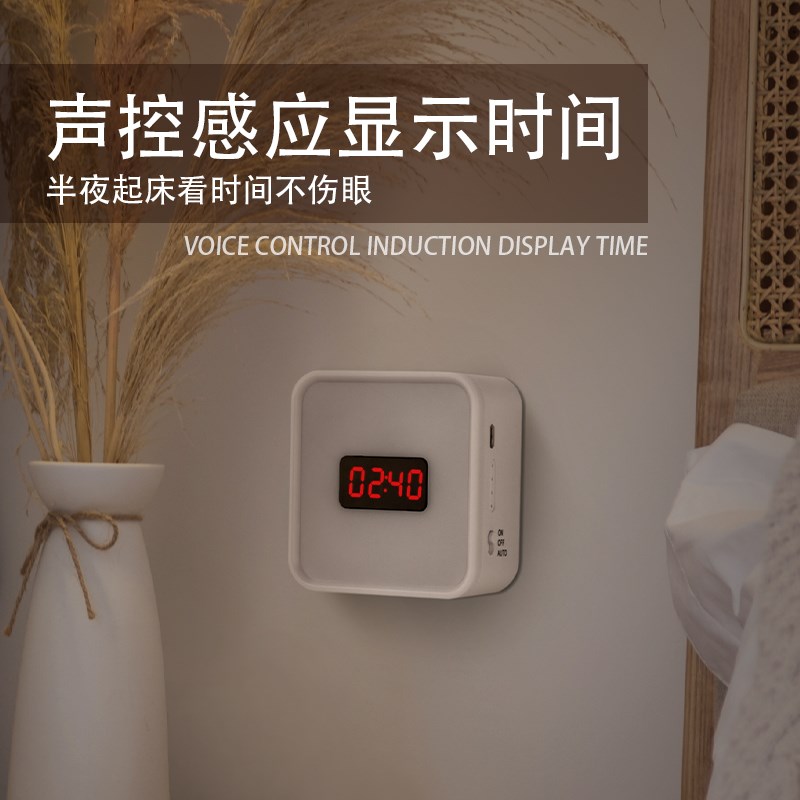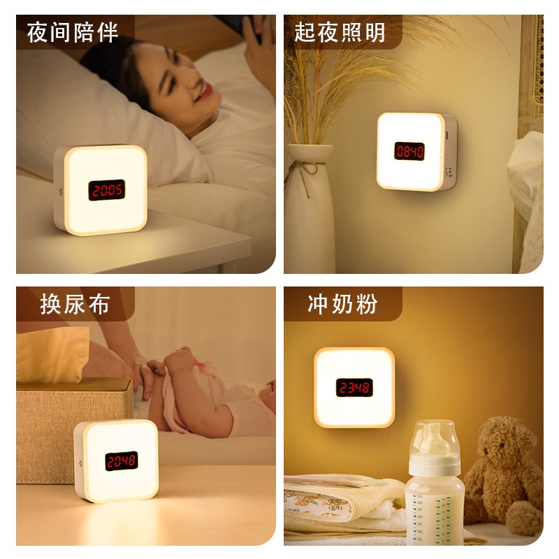 LED充电时钟一体小夜灯卧室宿舍调光护眼灯声控感应床头装饰台灯8
