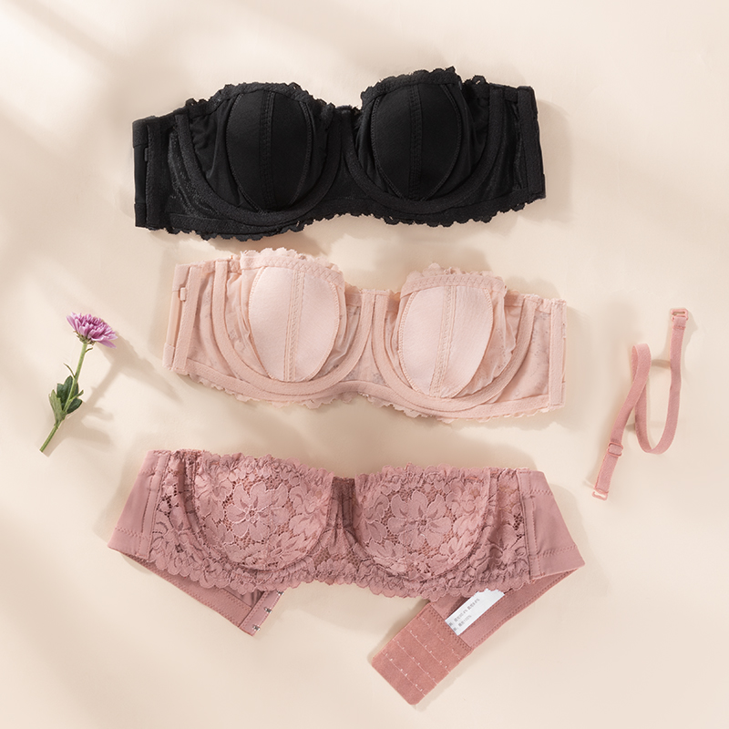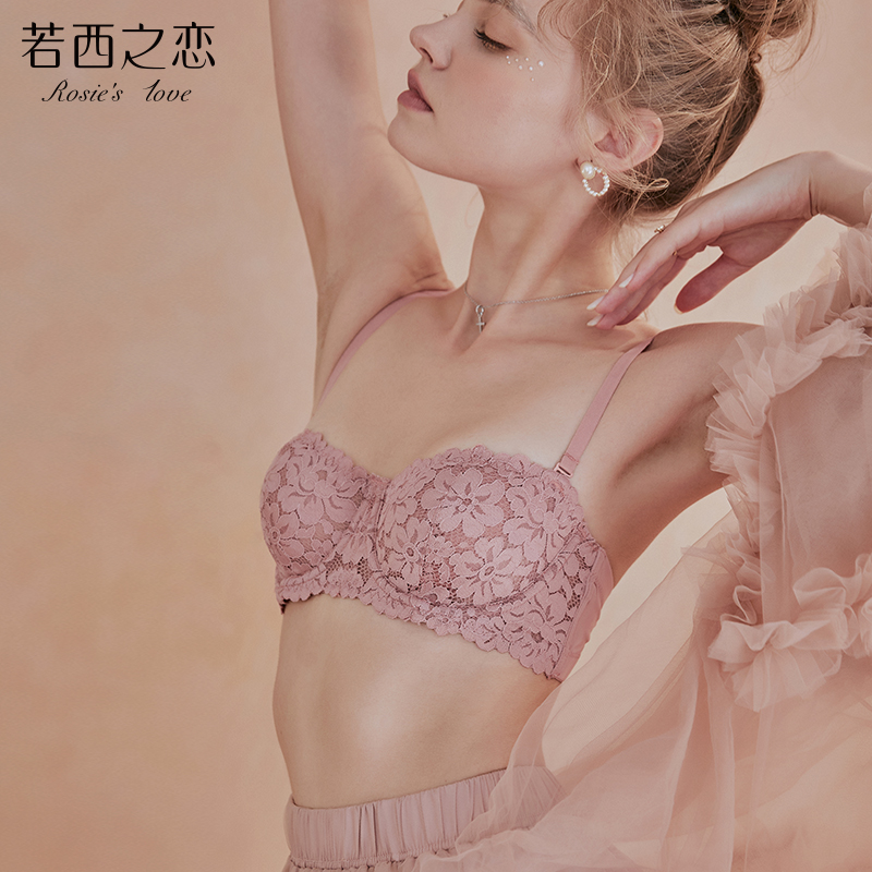 夏季性感内衣大胸显小胸女超薄款法式聚拢半杯钢圈蕾丝文胸罩套装