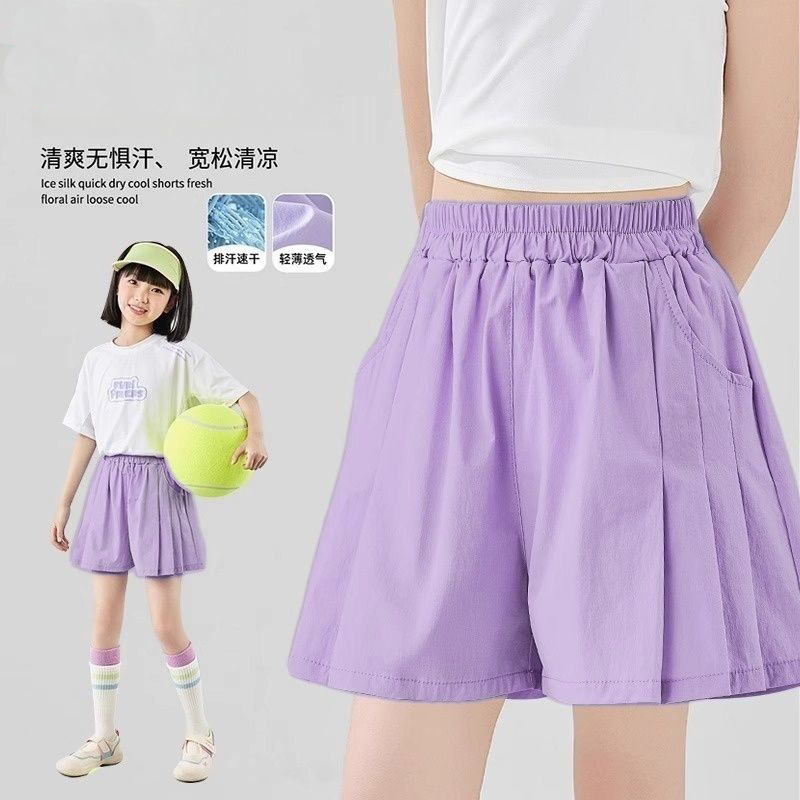 女童短裤夏季外穿儿童2025新款夏装阔腿裤女大童冰丝运动速干裤子