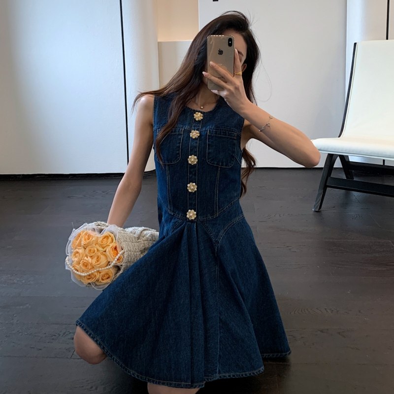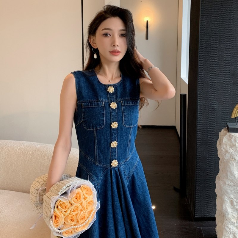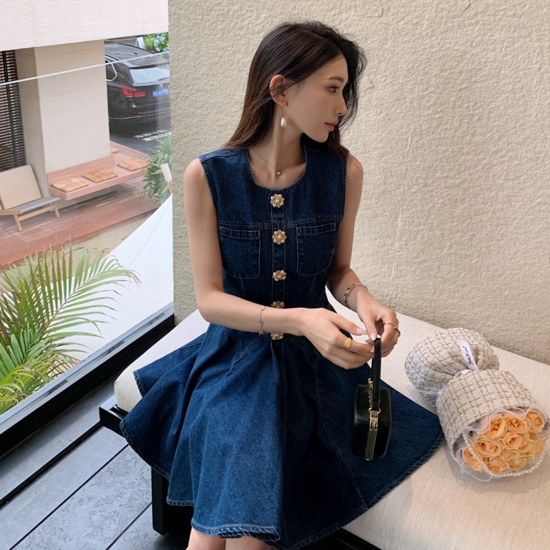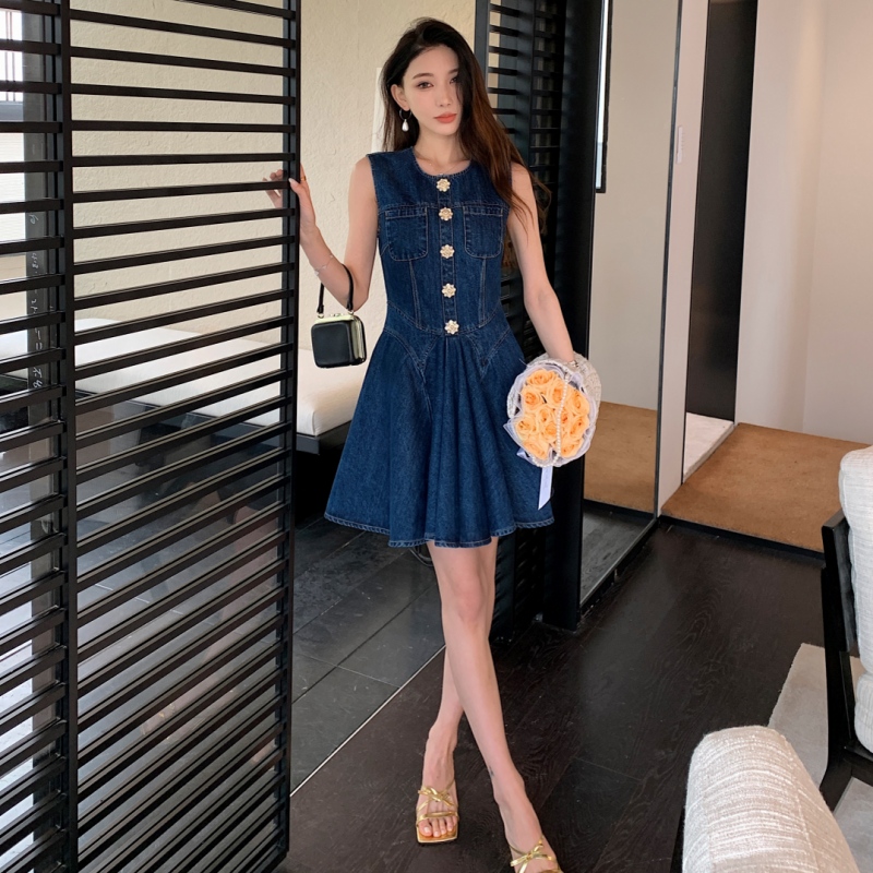 明星同款无袖背心牛仔裙时尚气质收腰超好看连衣裙2025新款女夏季