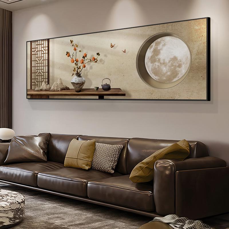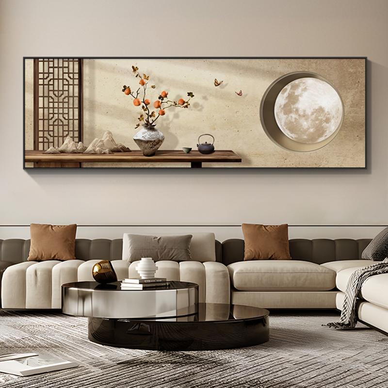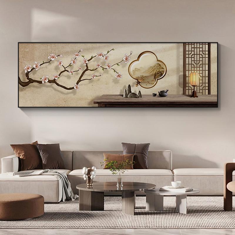 原木风客厅装饰画高级感沙发背景墙面壁画横幅新中式禅意茶室挂画