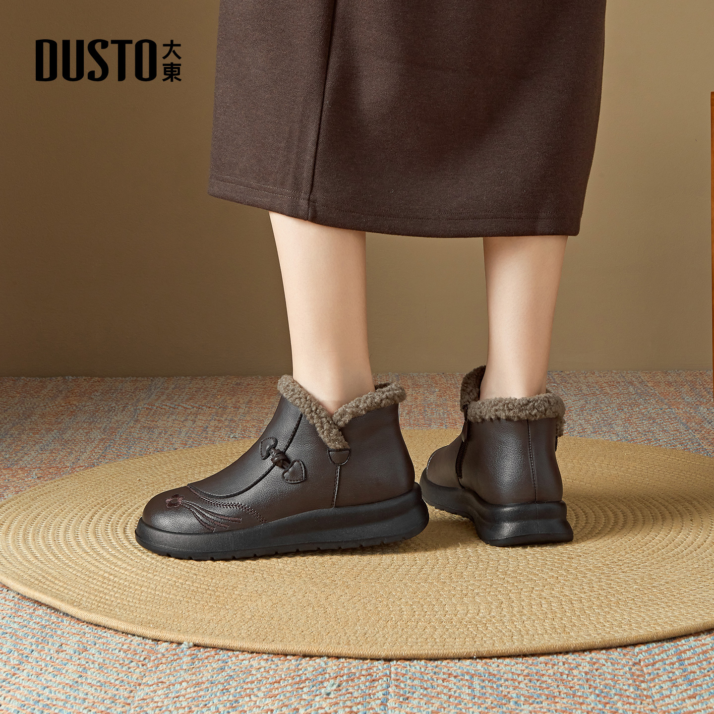 大东女靴妈妈鞋2025冬季新款平底侧拉链加绒保暖中老年短筒棉鞋女