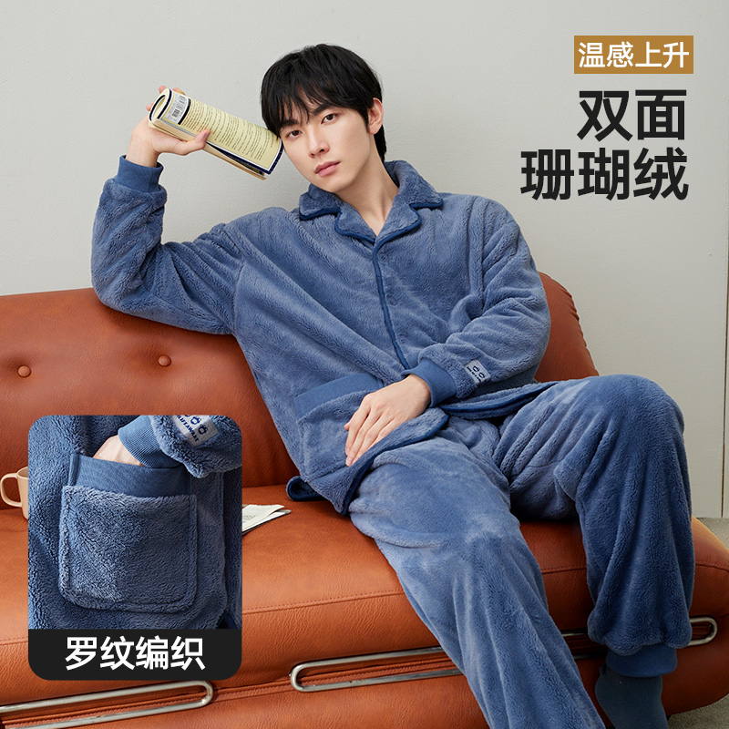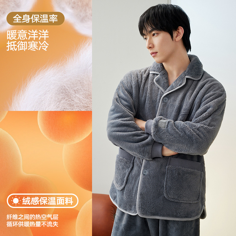 海澜之家25年秋冬新款男士家居服珊瑚绒睡袍抗静电法兰绒睡衣套装