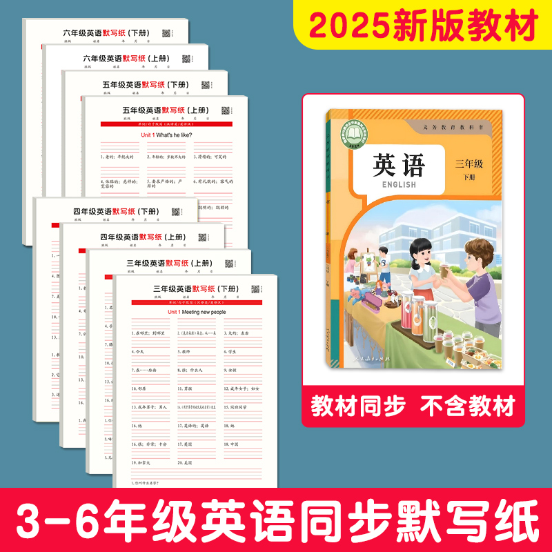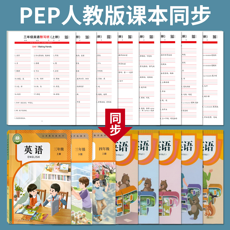 小学生三四年级英语默写纸pep人教版3456五六年级下册上册英汉互译课本同步单词常用表达句子默写巩固练字帖