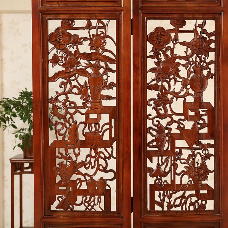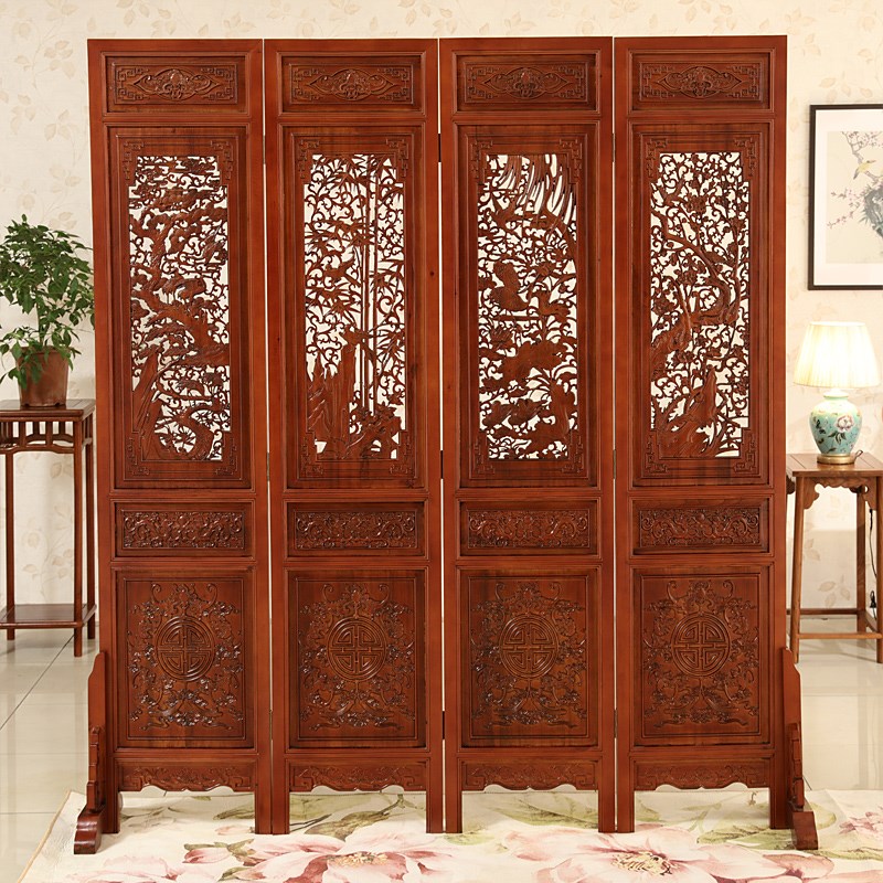 酒店玄关隔断墙h新中式实木屏风客厅折叠移动玄关仿古木雕简约装