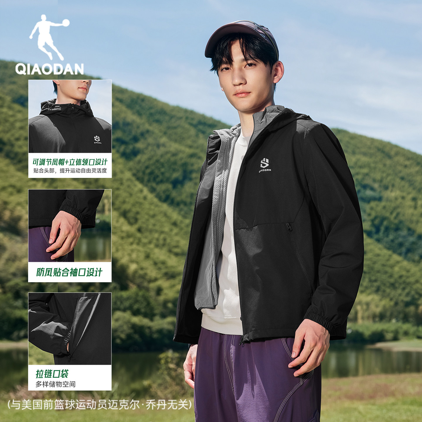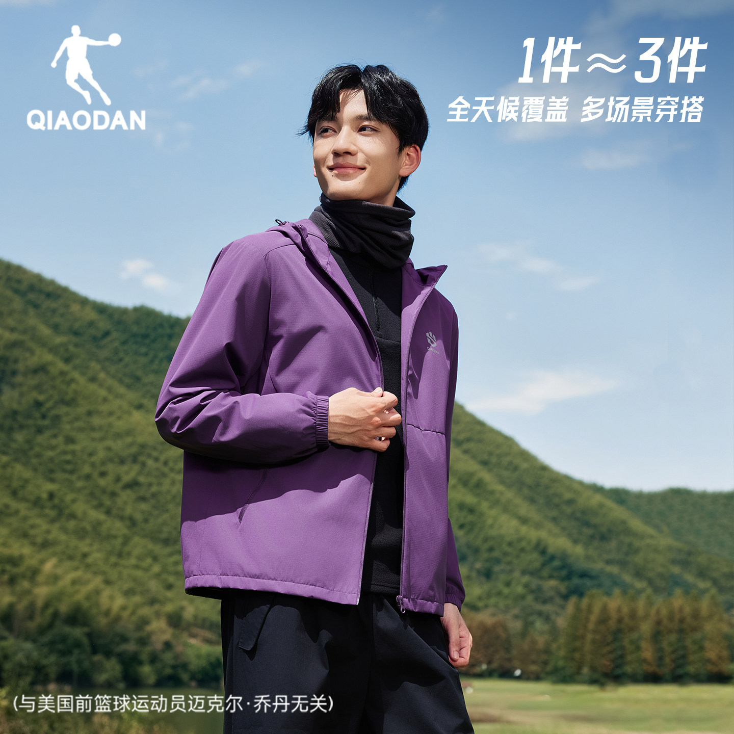 乔丹加绒休闲风衣外套男生2025冬季新款防风保暖连帽冲锋户外夹克