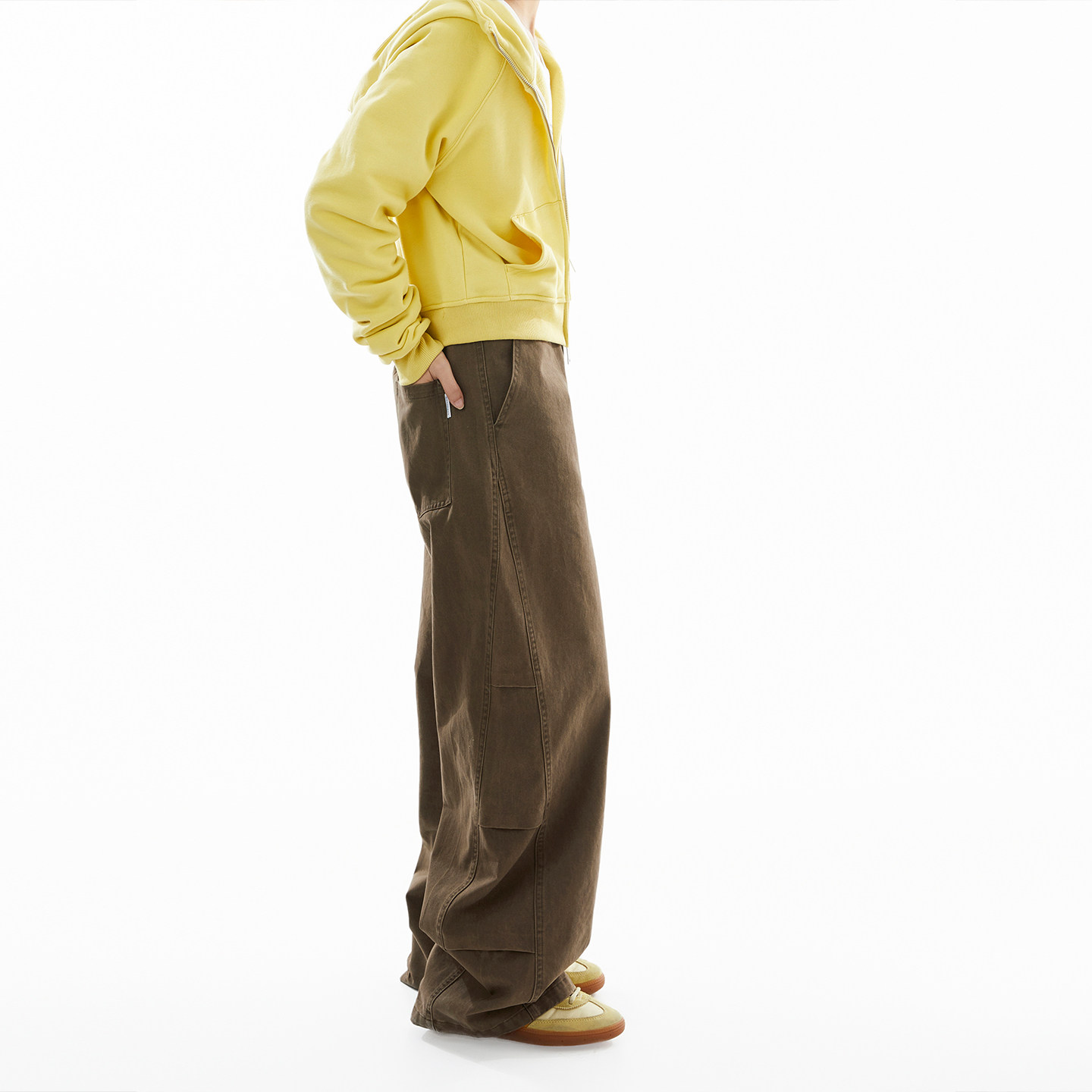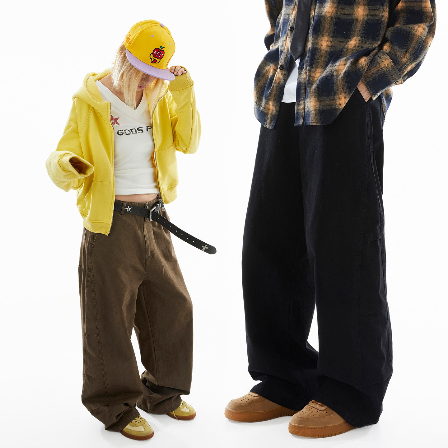 lemanism复古纯色直筒工装裤男2025春季情侣款潮牌纯棉休闲长裤子