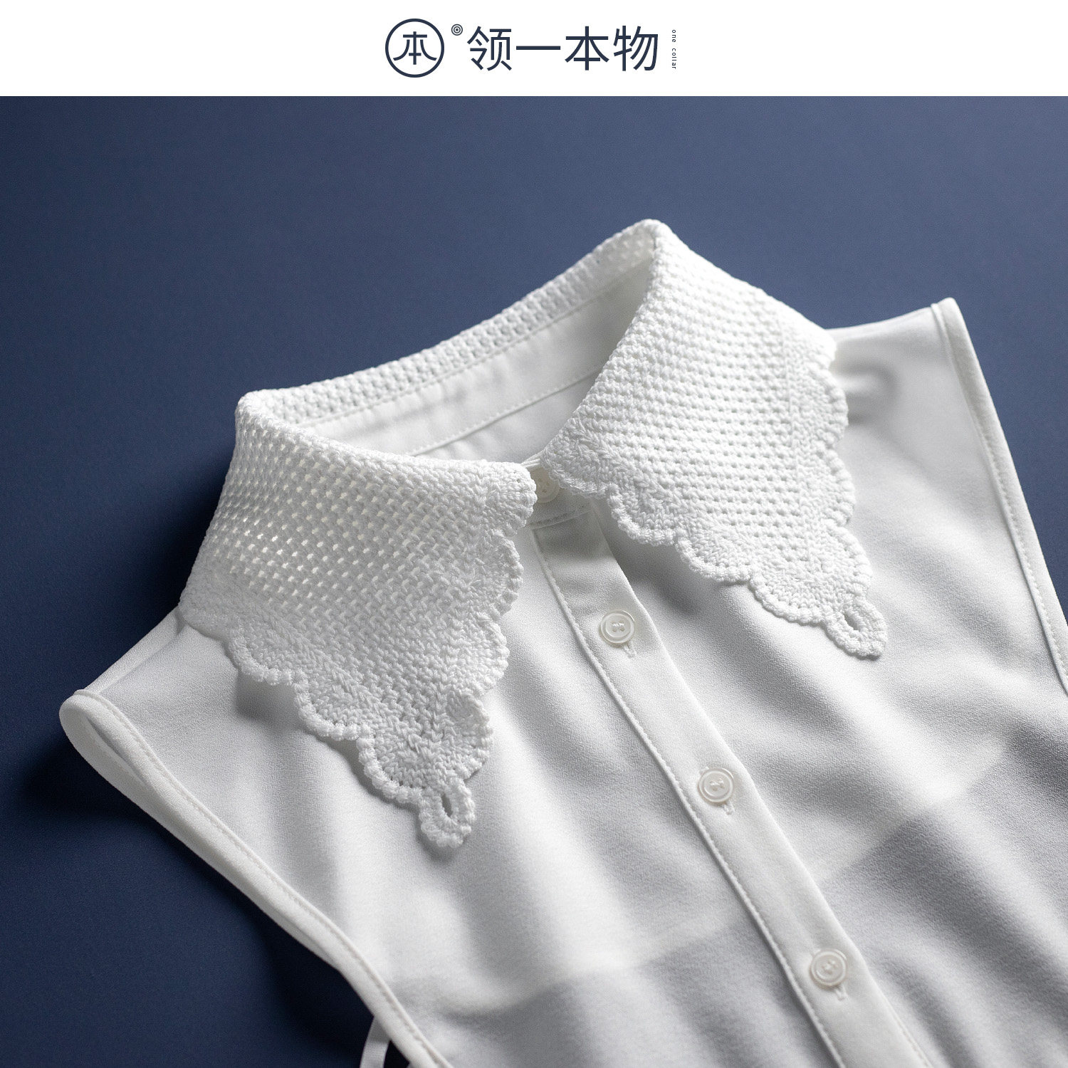 水溶绣花蕾丝假领大尖领