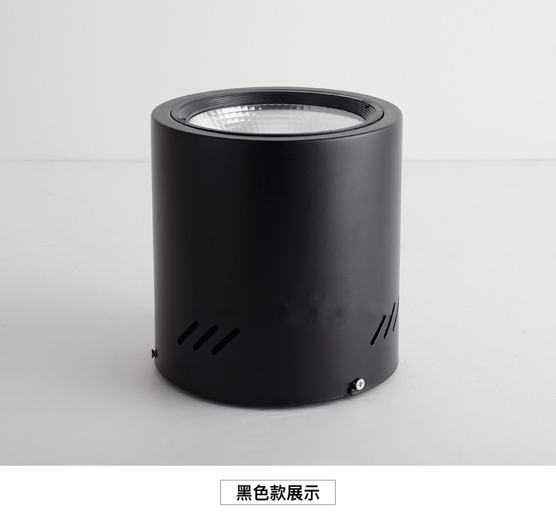 明装LED筒灯免开孔服装店铺黑色圆形cob射灯过道玄关客厅天花吊灯
